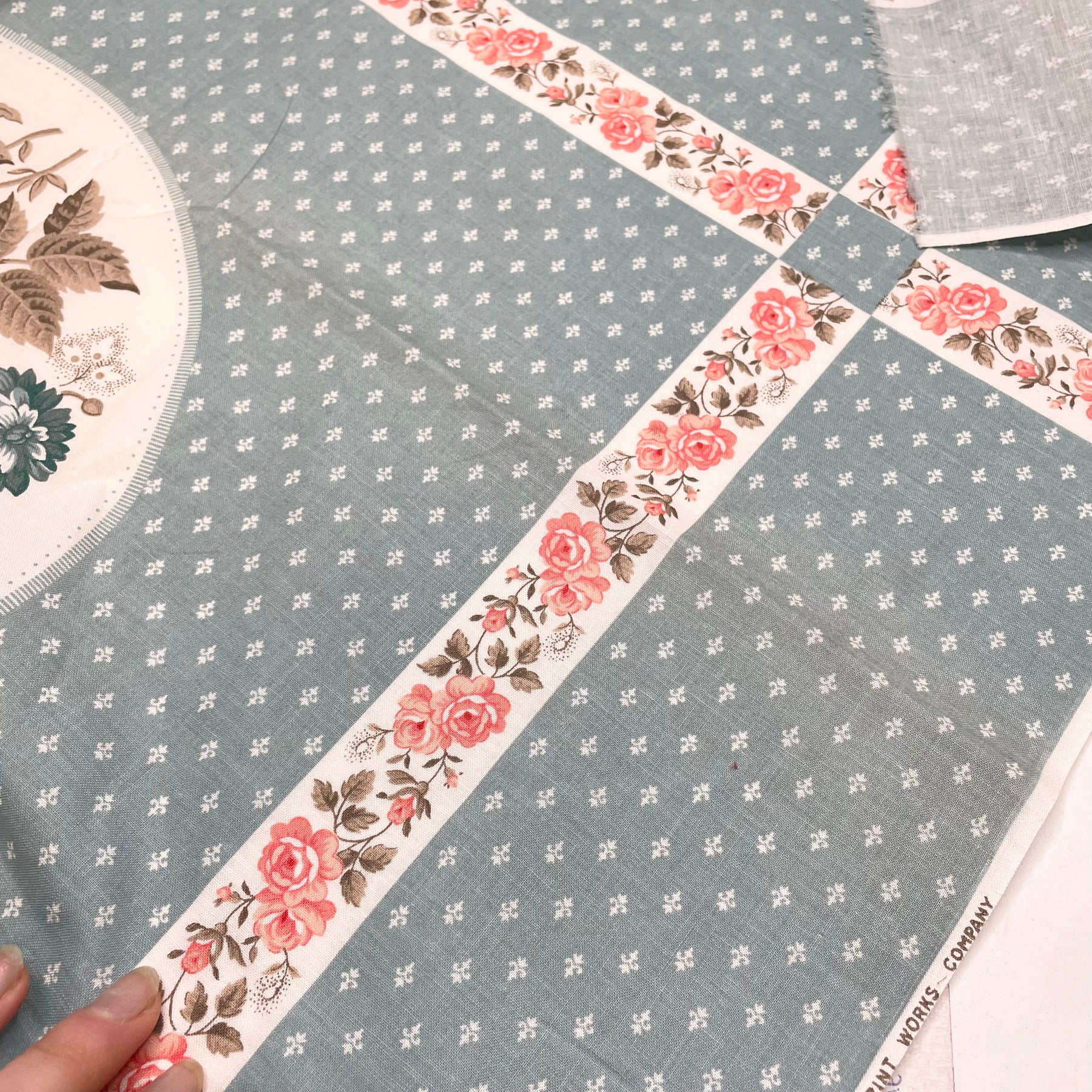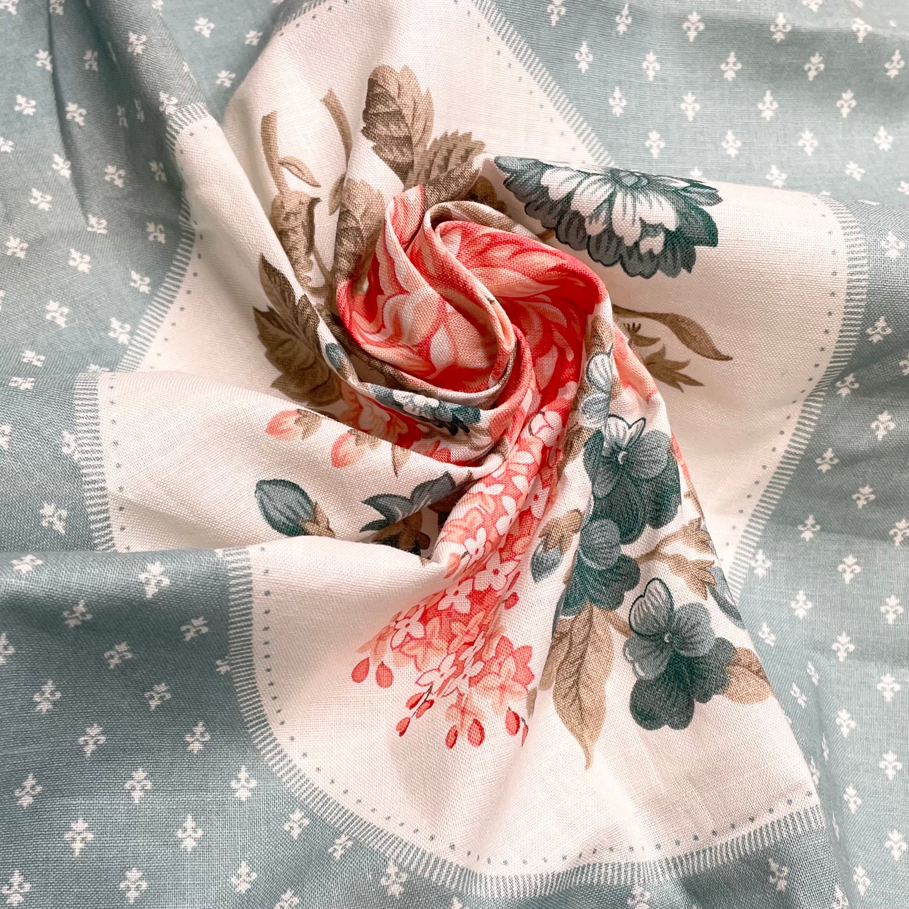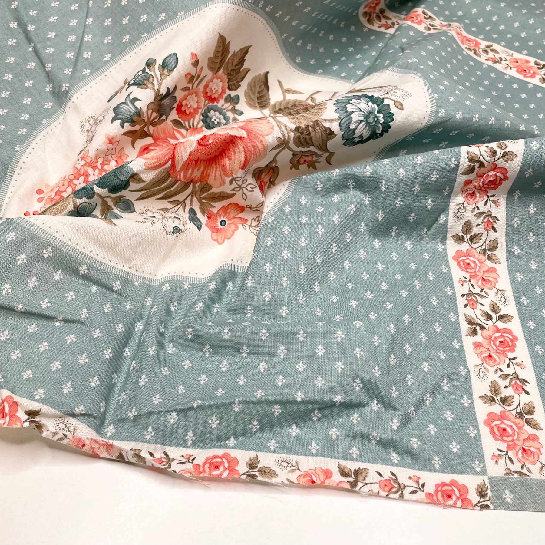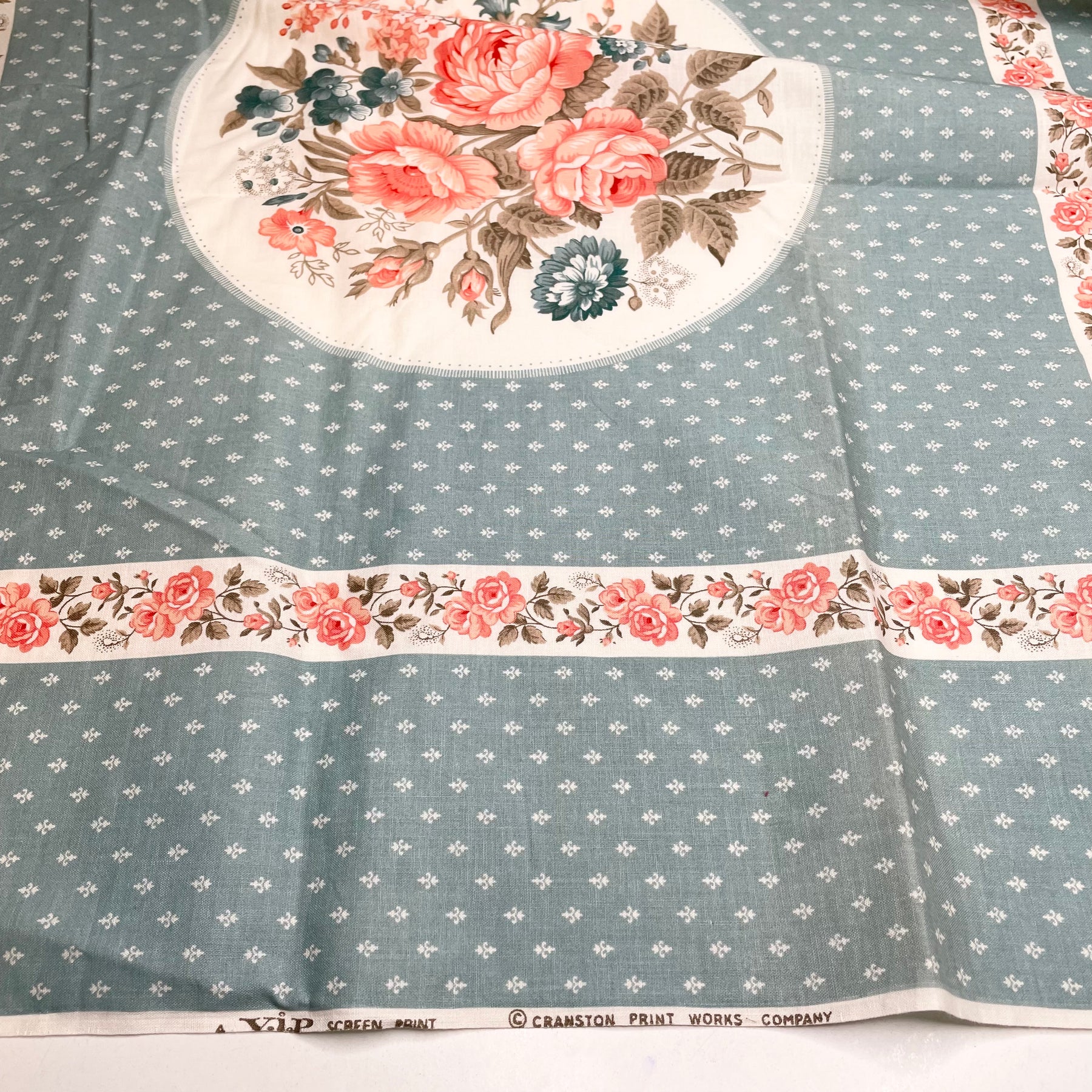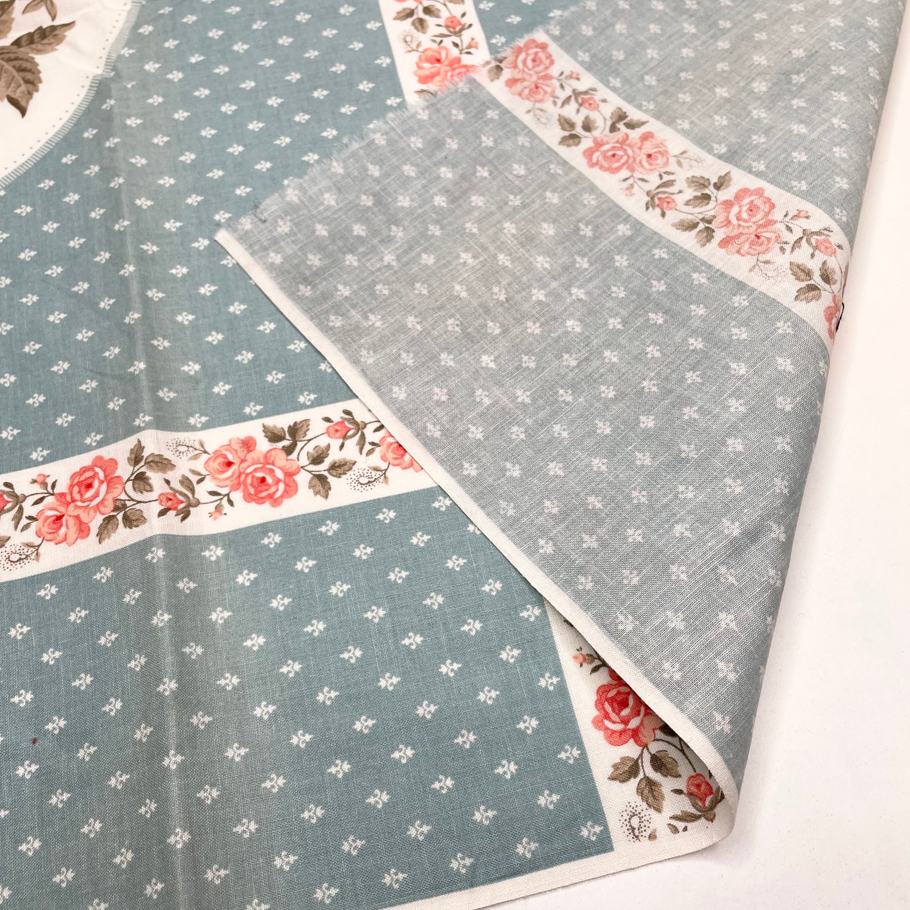 Rose Centerpiece - Vintage Panel Cotton Woven - Blue/Pink Floral - Bundles