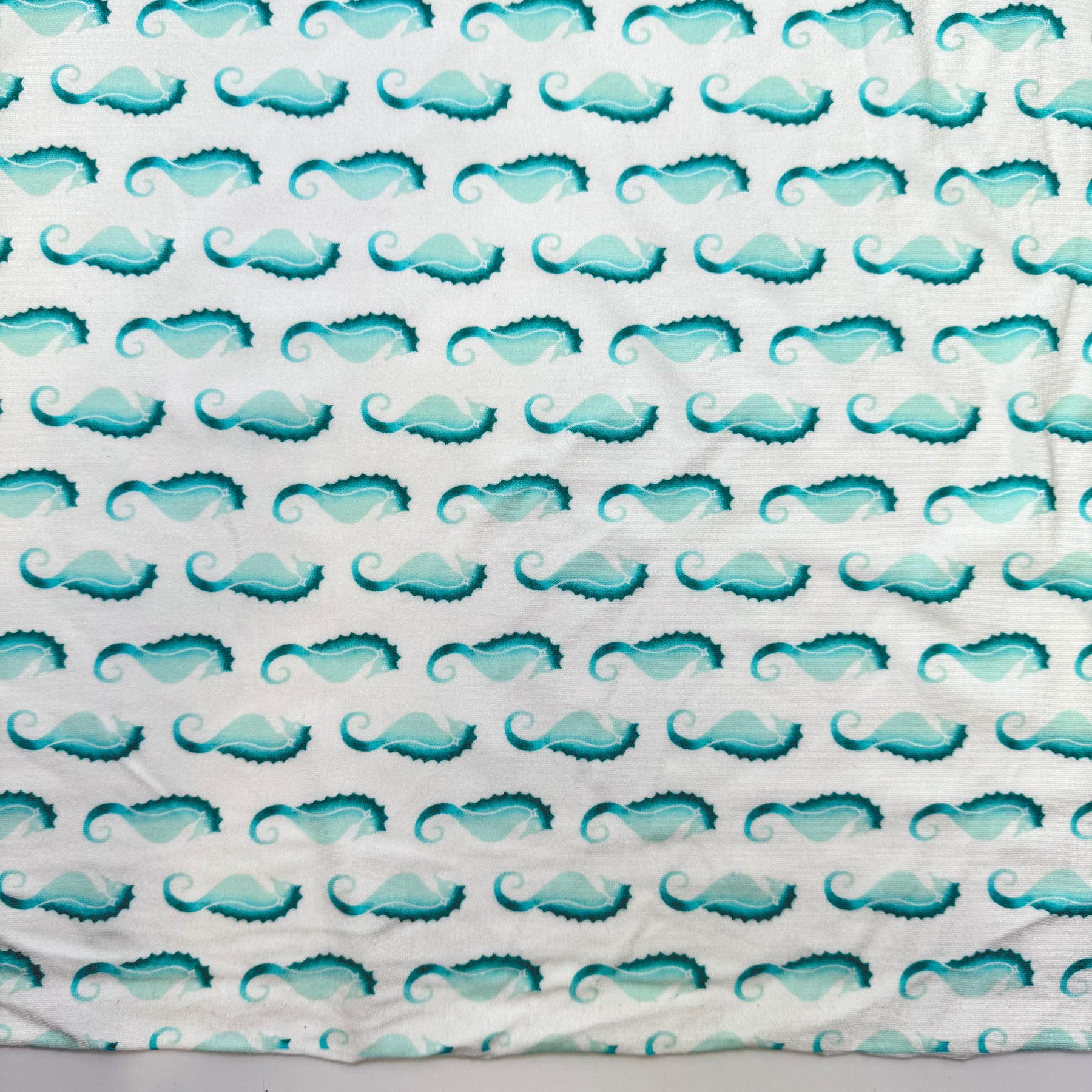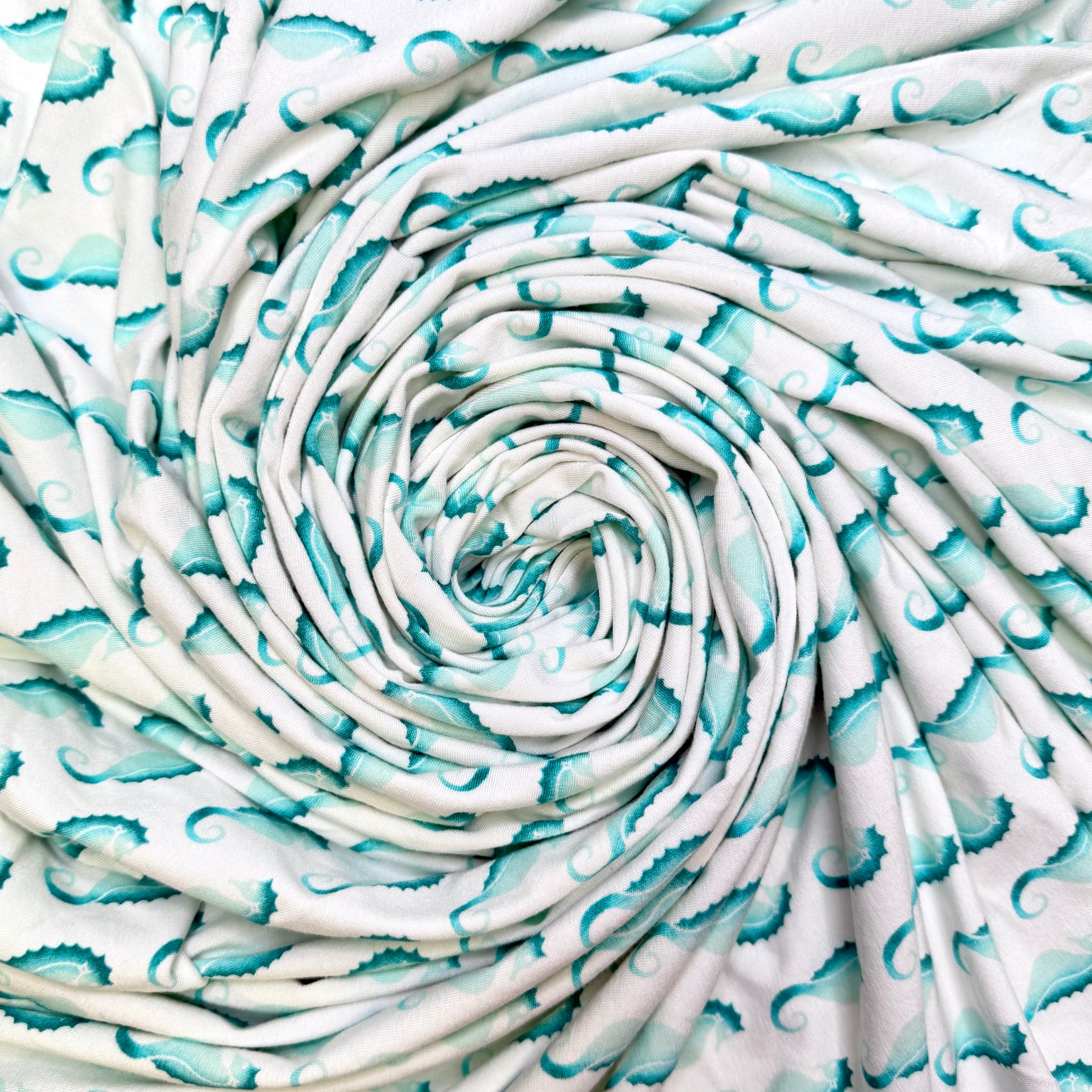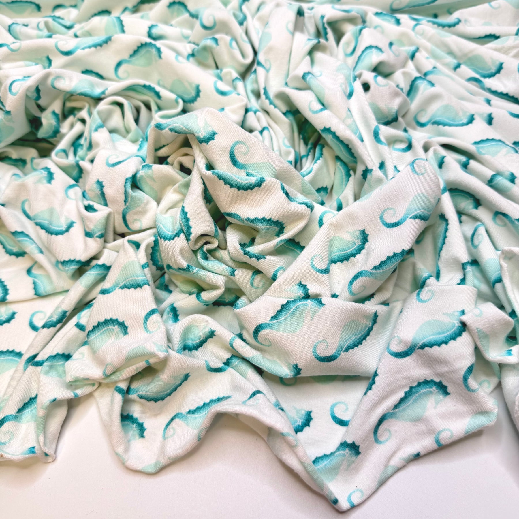 Scuba Dancing - Jersey Cotton Blend Knit - White/Teal Seahorses - 2.9M Bundle