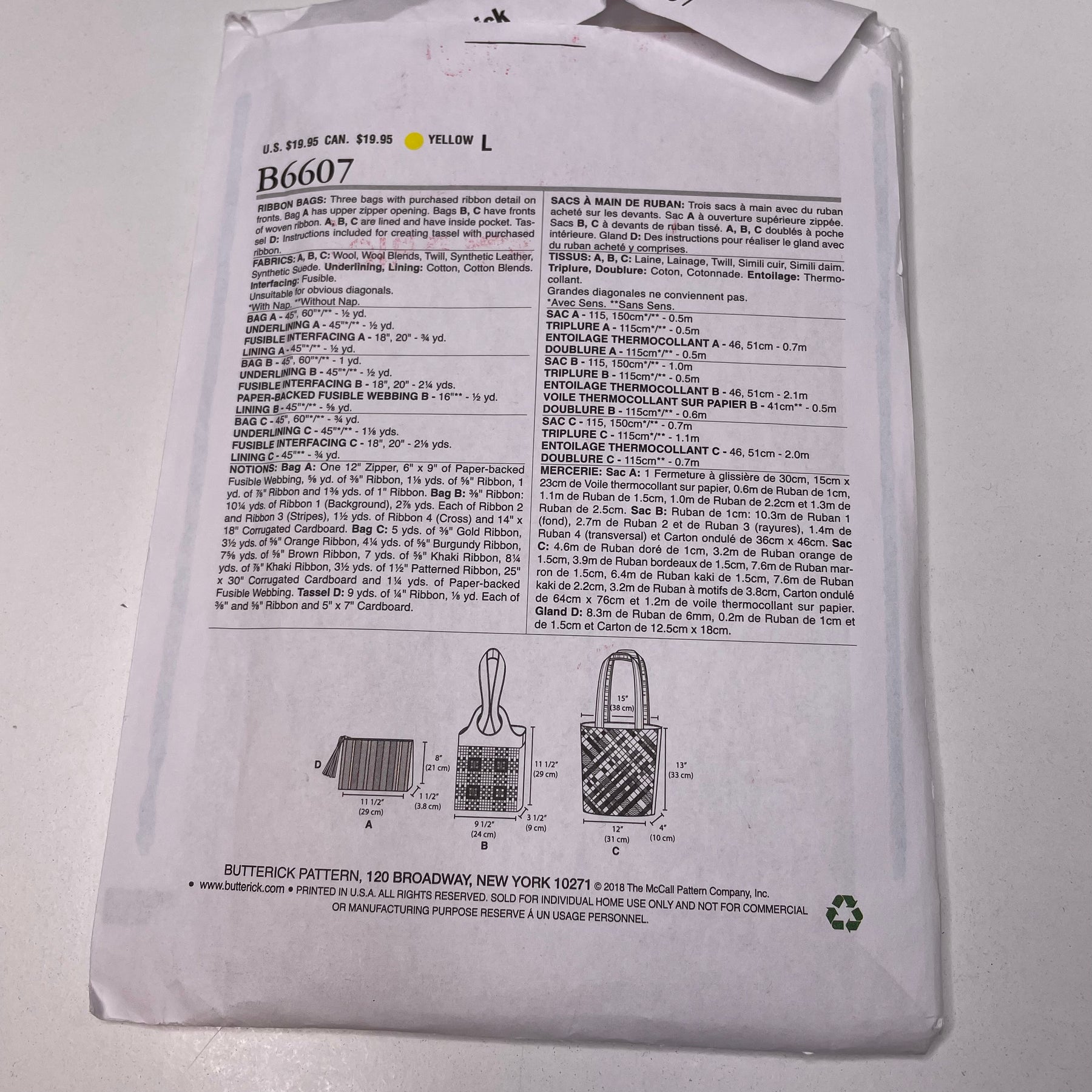 Sewing Pattern - Accessories - Butterick B6607