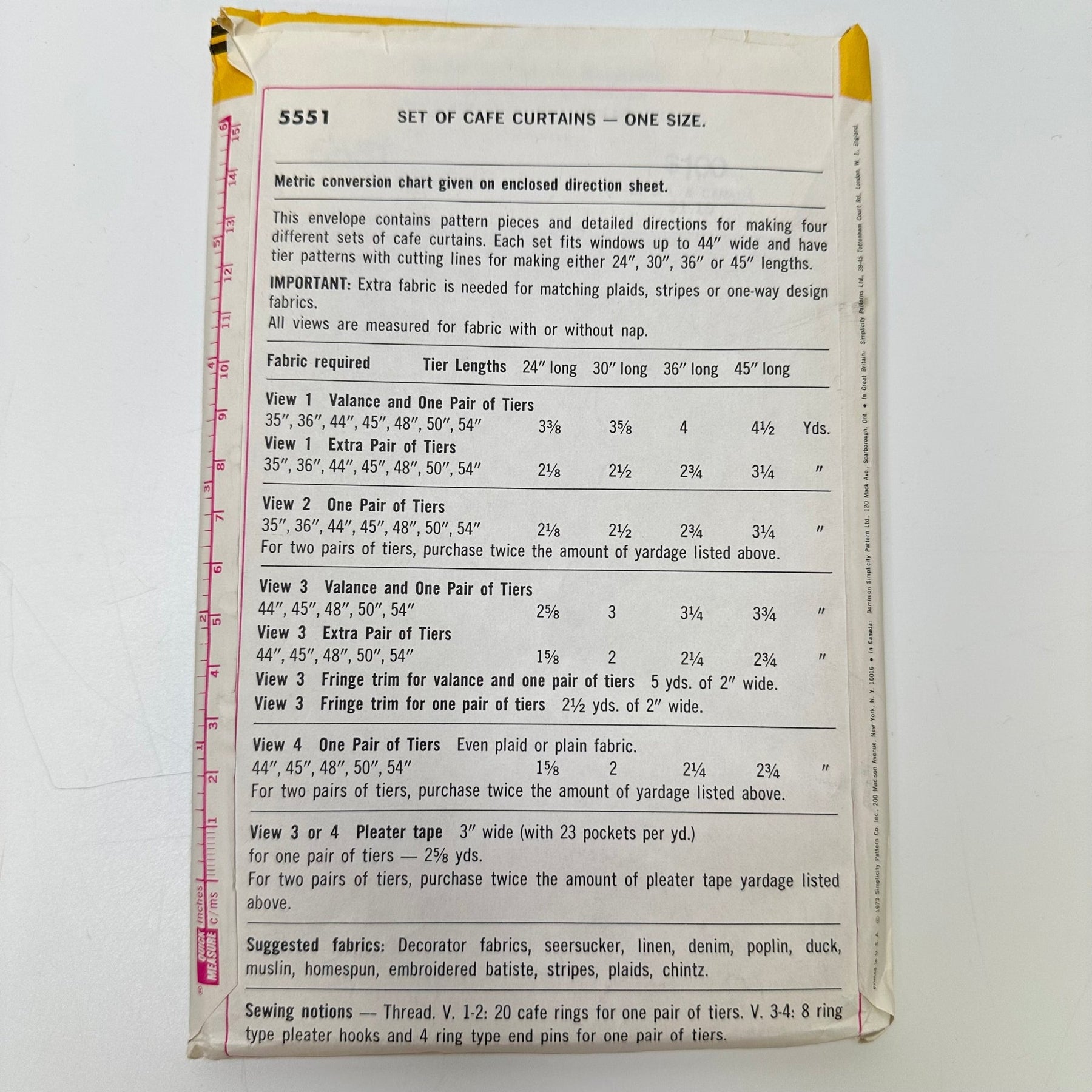 - Please note your size and measurements, as well as the required notions on the package.