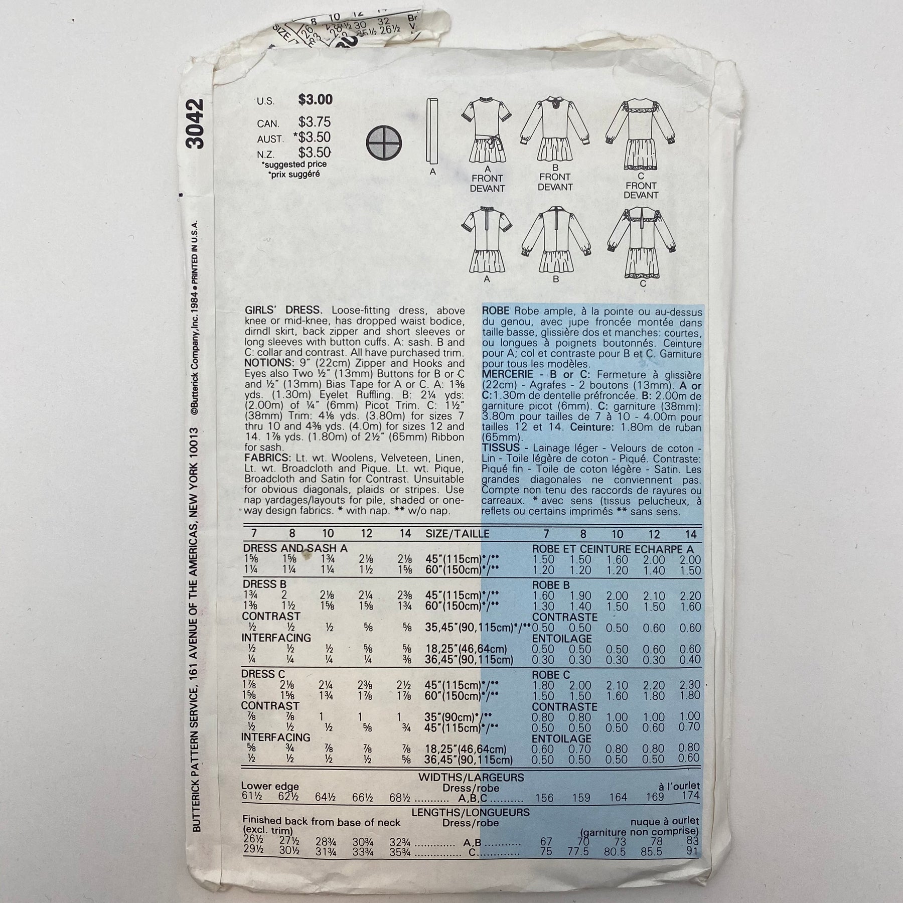 Sewing Pattern - Children - Butterick 3042