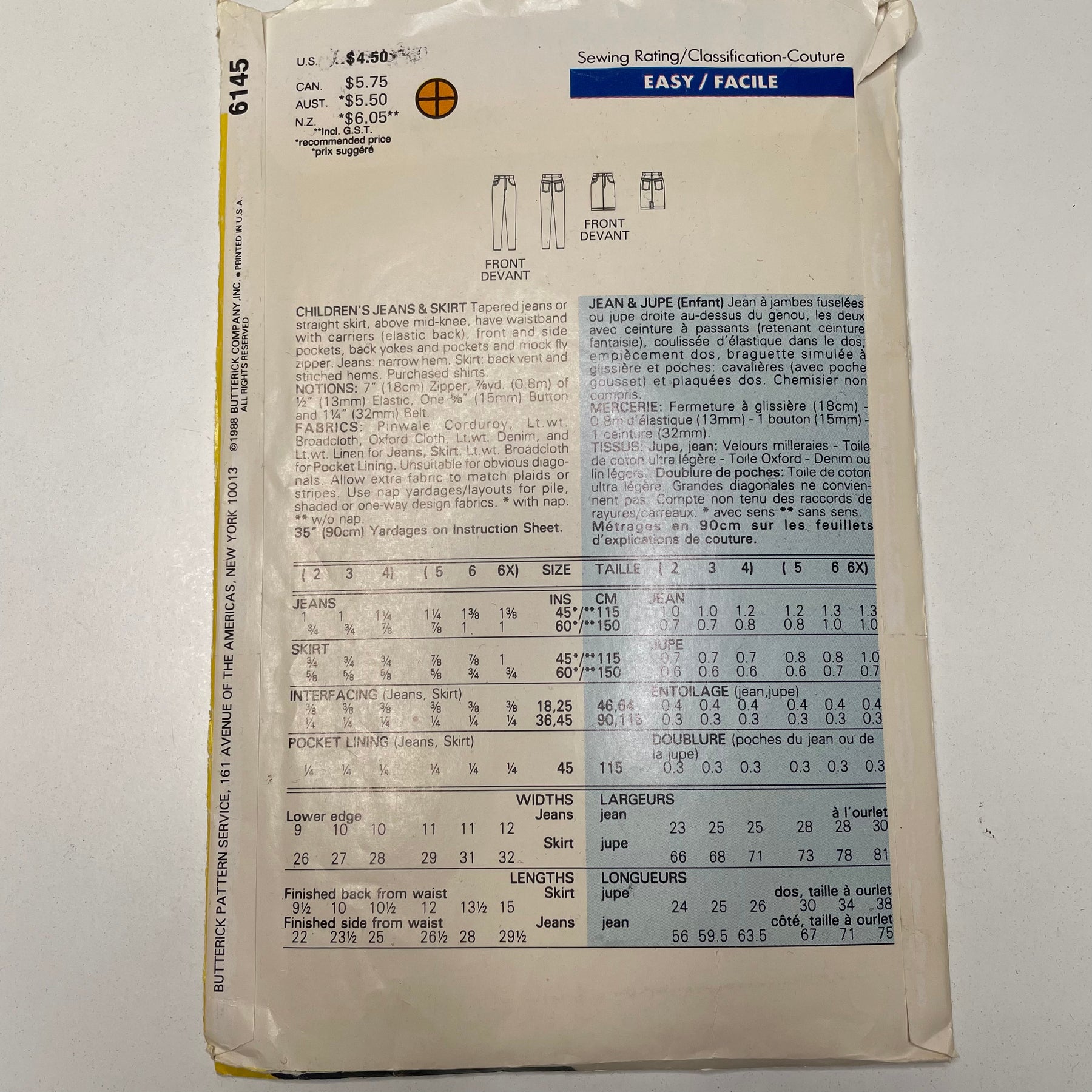 Sewing Pattern - Childrenswear - Butterick 6145