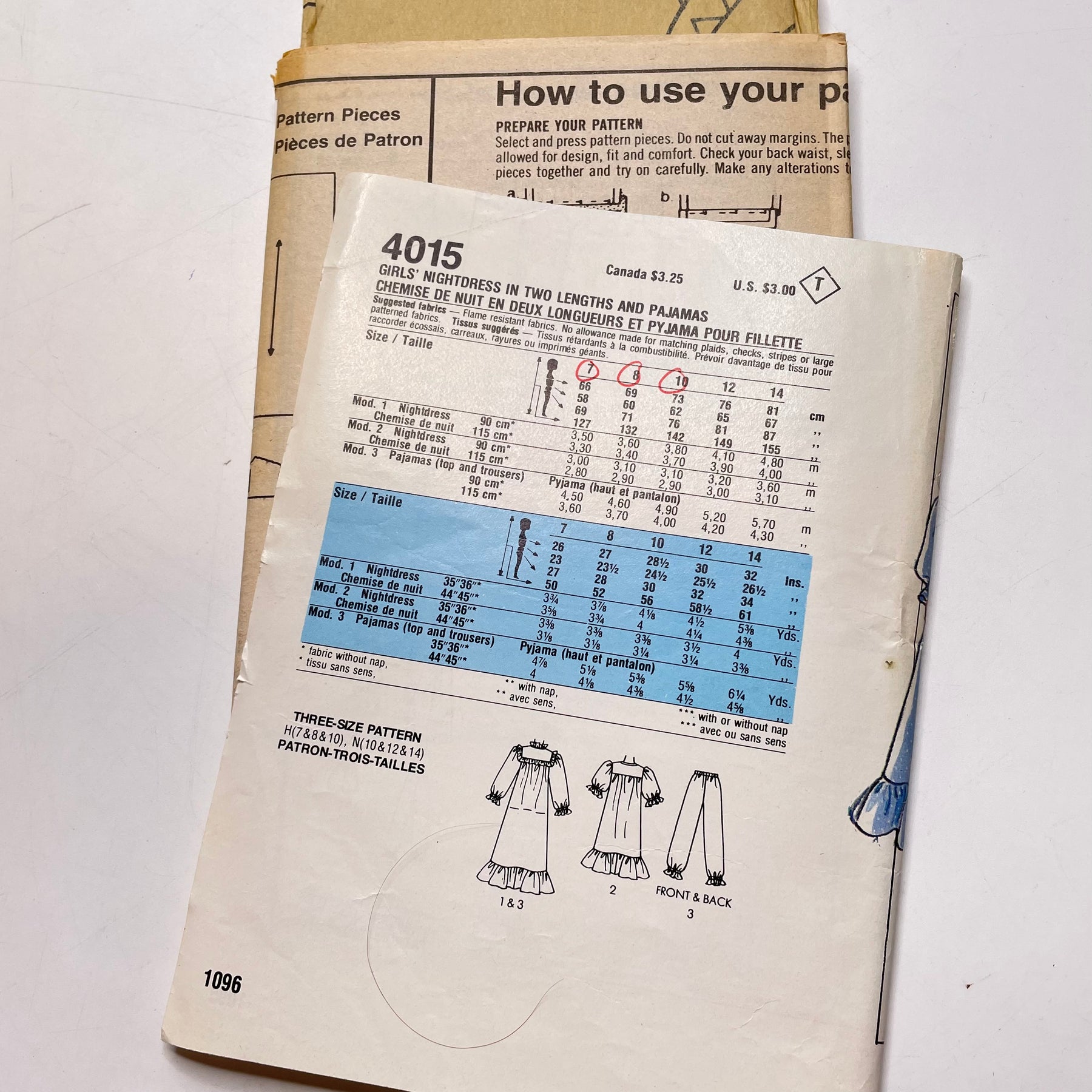 - Please note your size and measurements, as well as the required notions on the package.