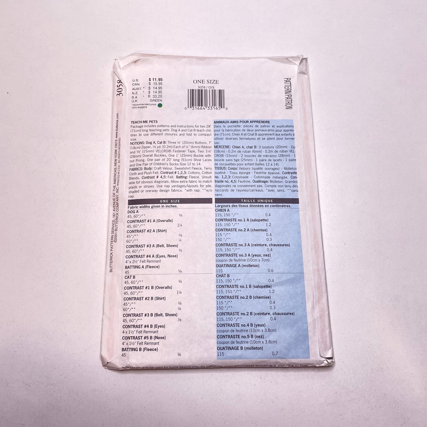 Sewing Pattern - Craft - Butterick 3058