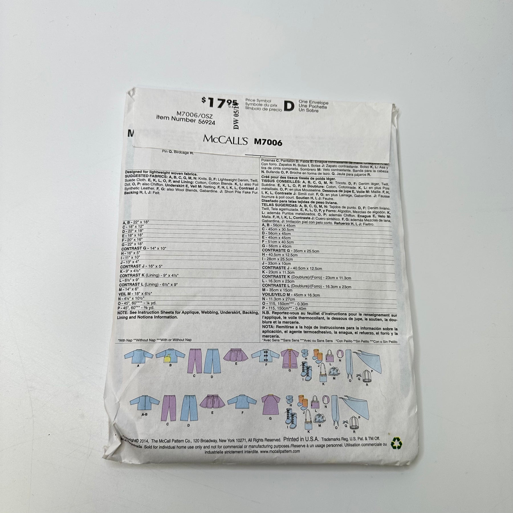 - Please note your size and measurements, as well as the required notions on the package.