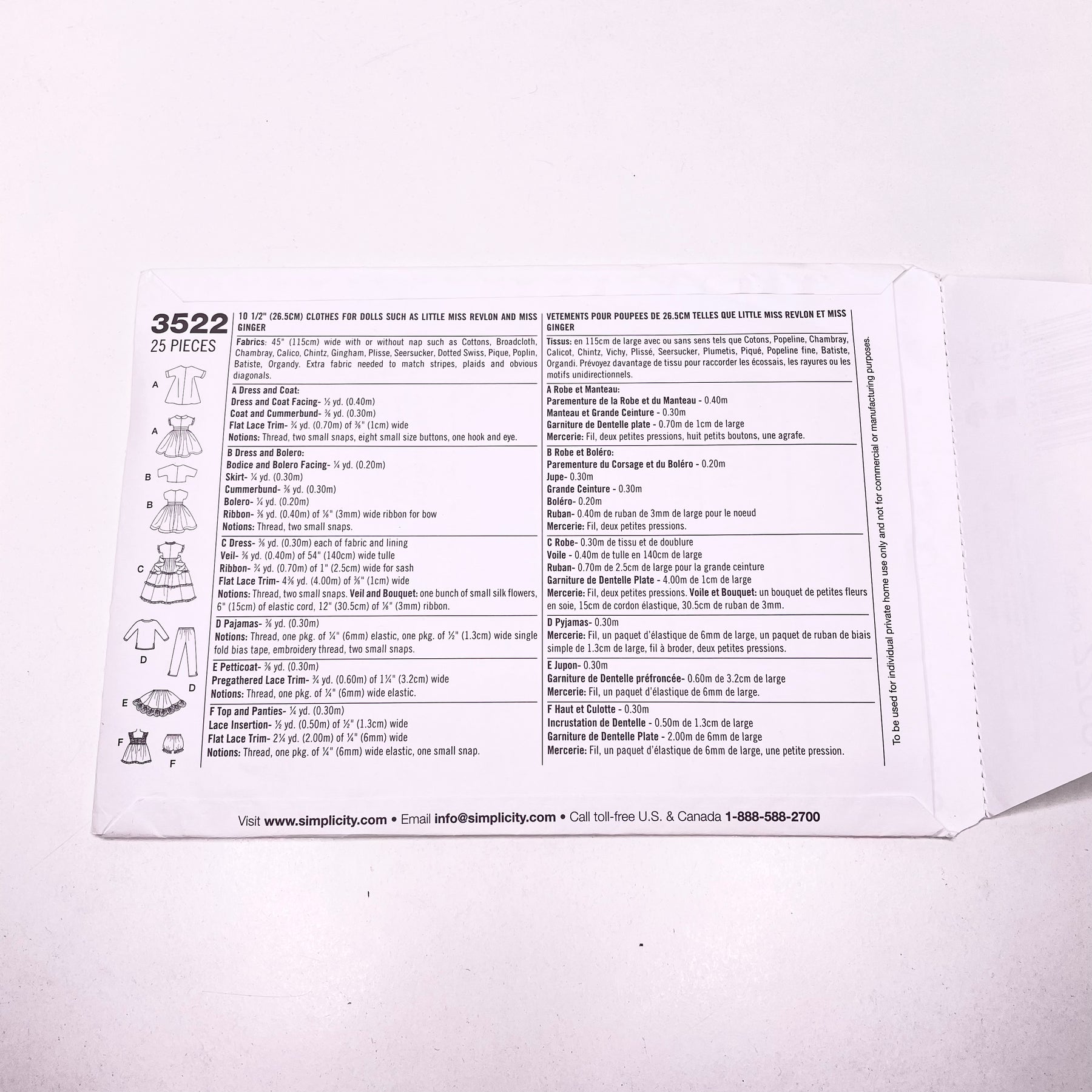 - Please note your size and measurements, as well as the required notions on the package.