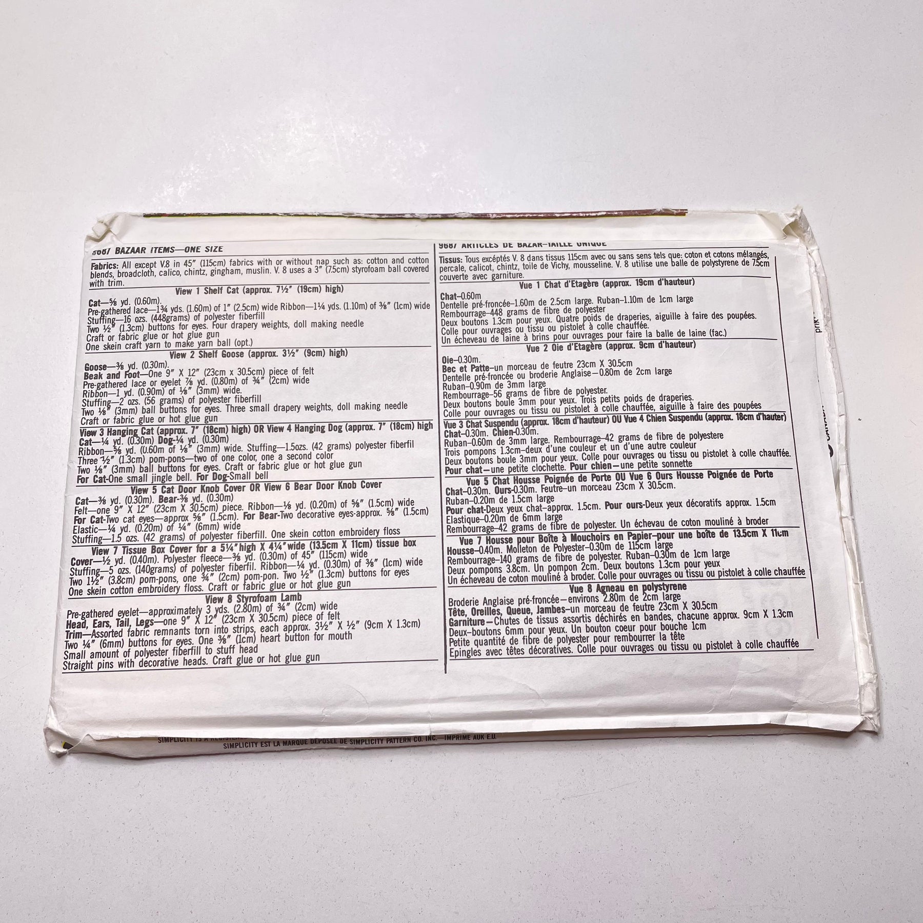 Sewing Pattern - Craft - Simplicity 9687