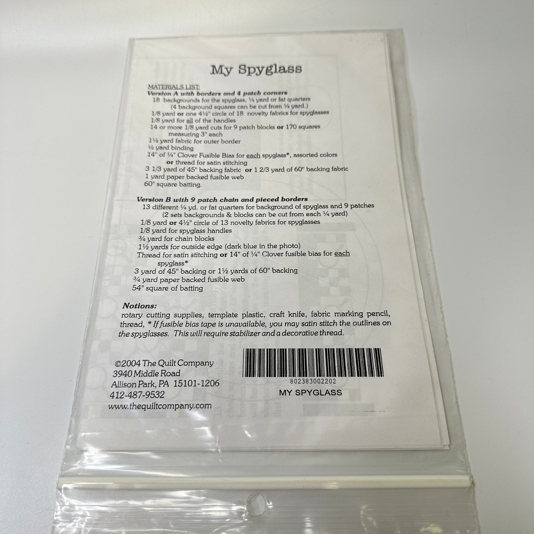 Sewing Pattern - Craft - The Quilt Company 220