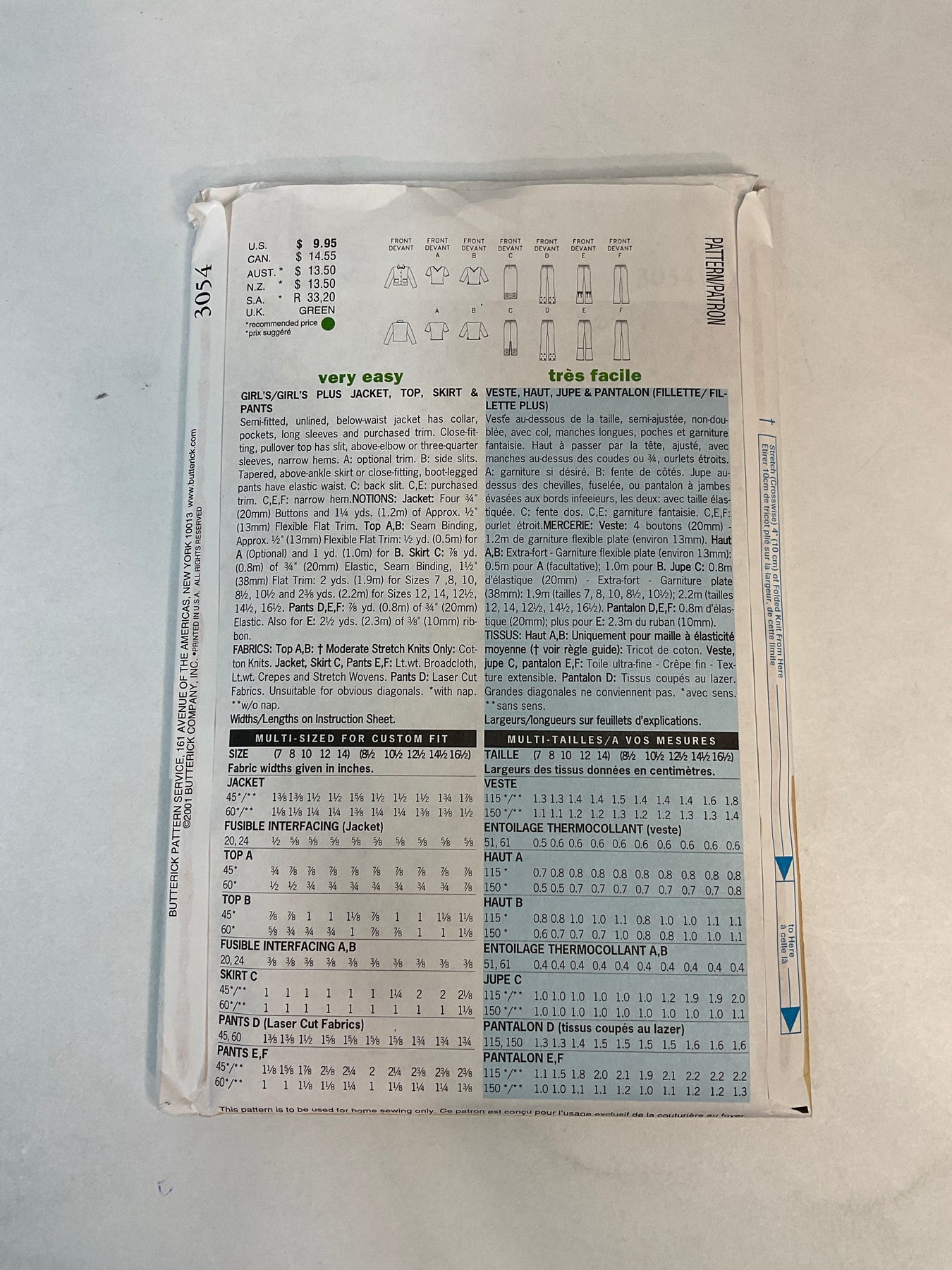 Sewing Pattern - Junior - Butterick 3054