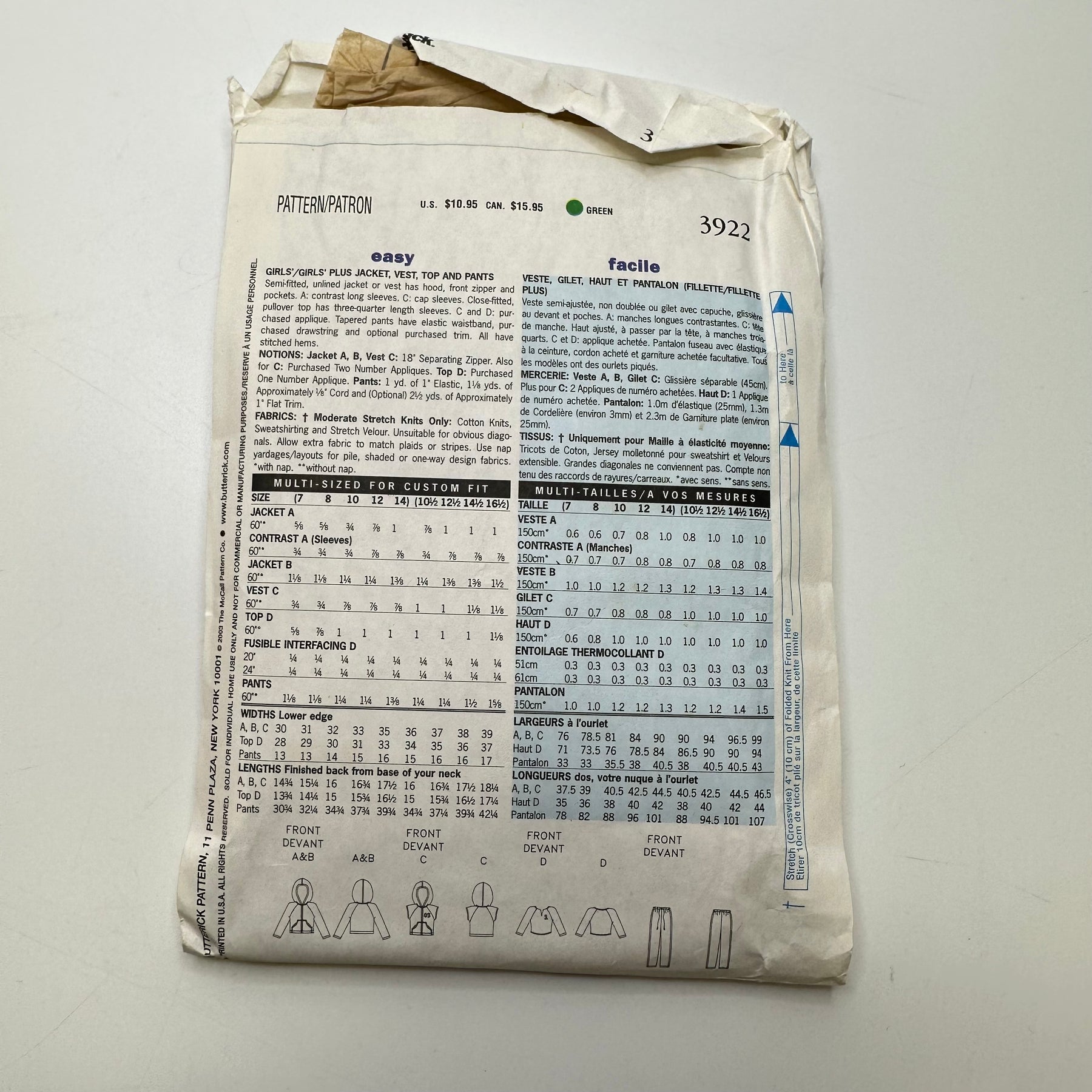 Sewing Pattern - Junior - Butterick 3922