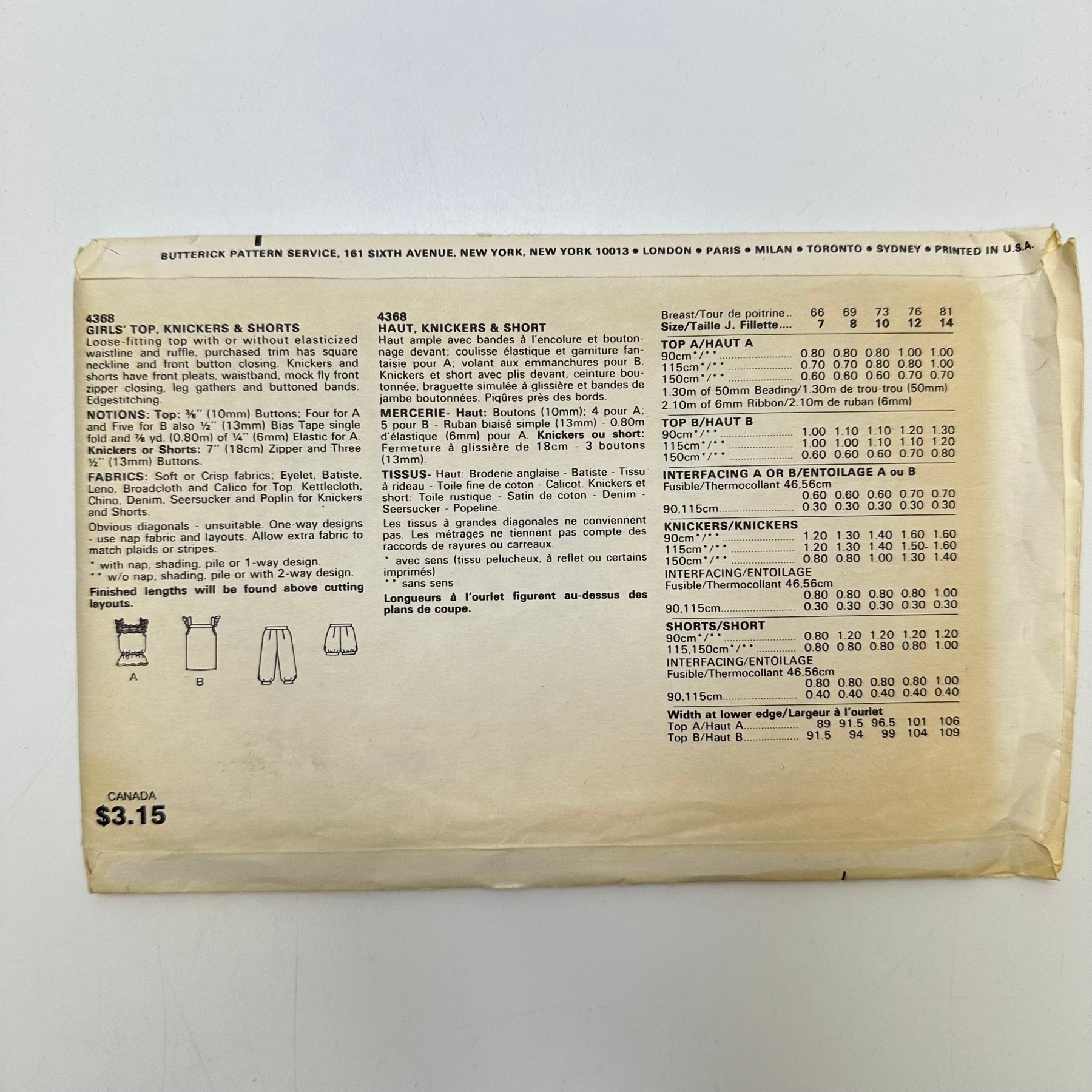 Sewing Pattern - Junior - Butterick 4368