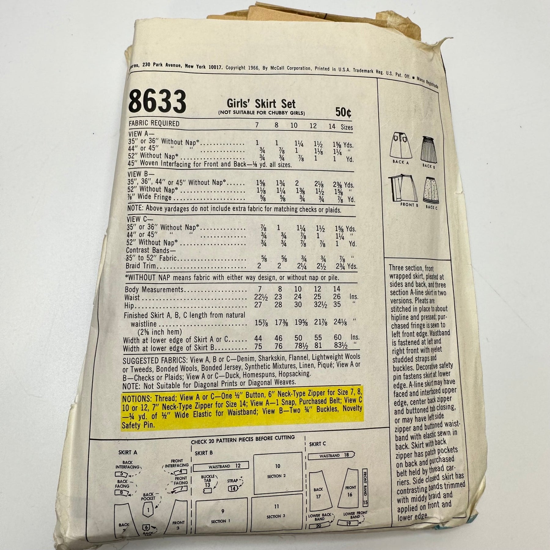 - Please note your size and measurements, as well as the required notions on the package.