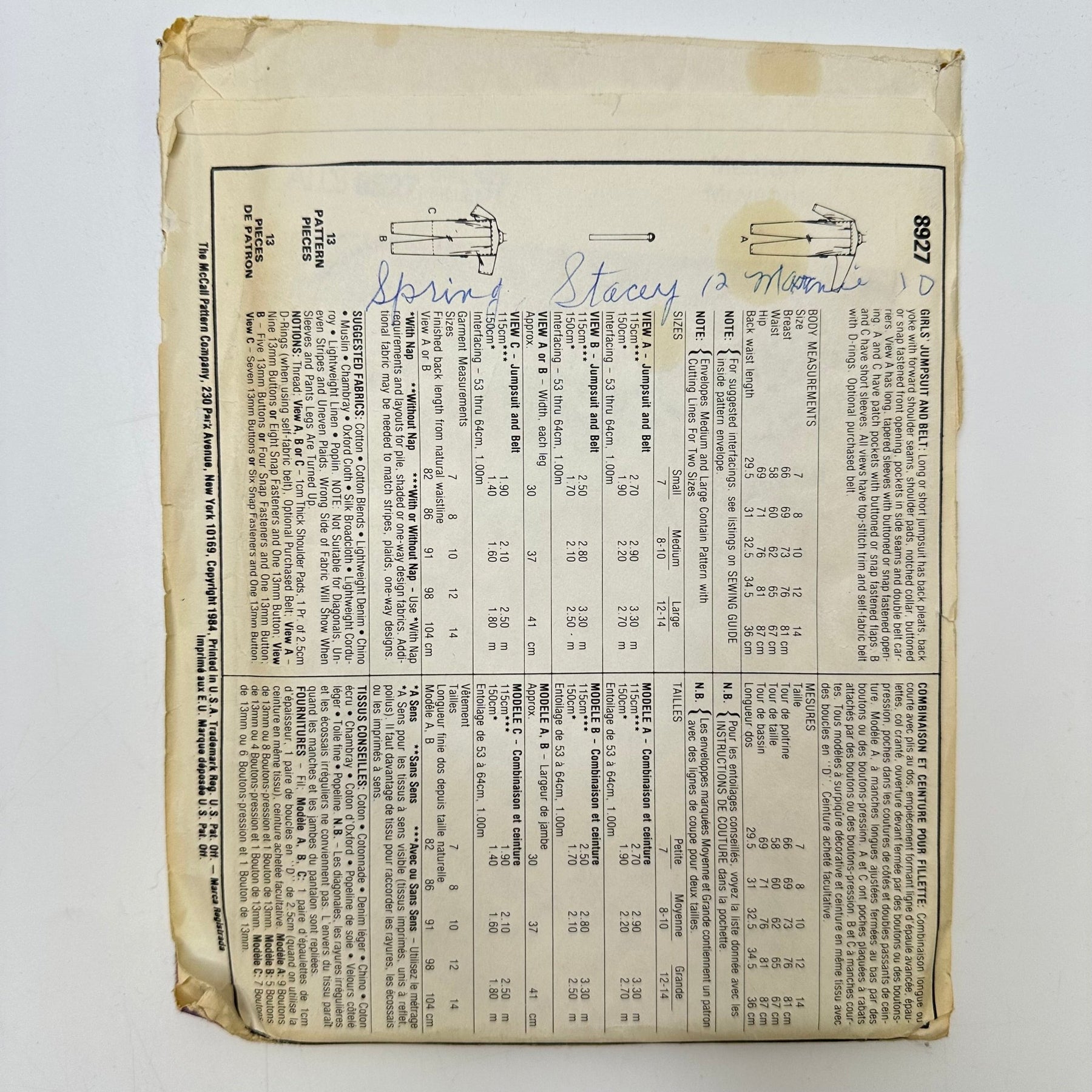 Brand:Â McCall's 8927