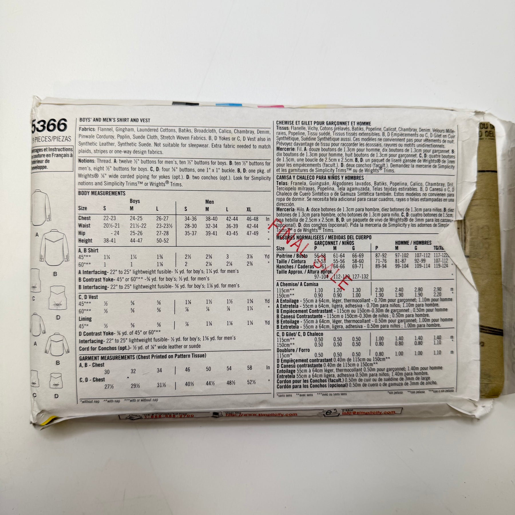 Sewing Pattern - Menswear - Simplicity 5366