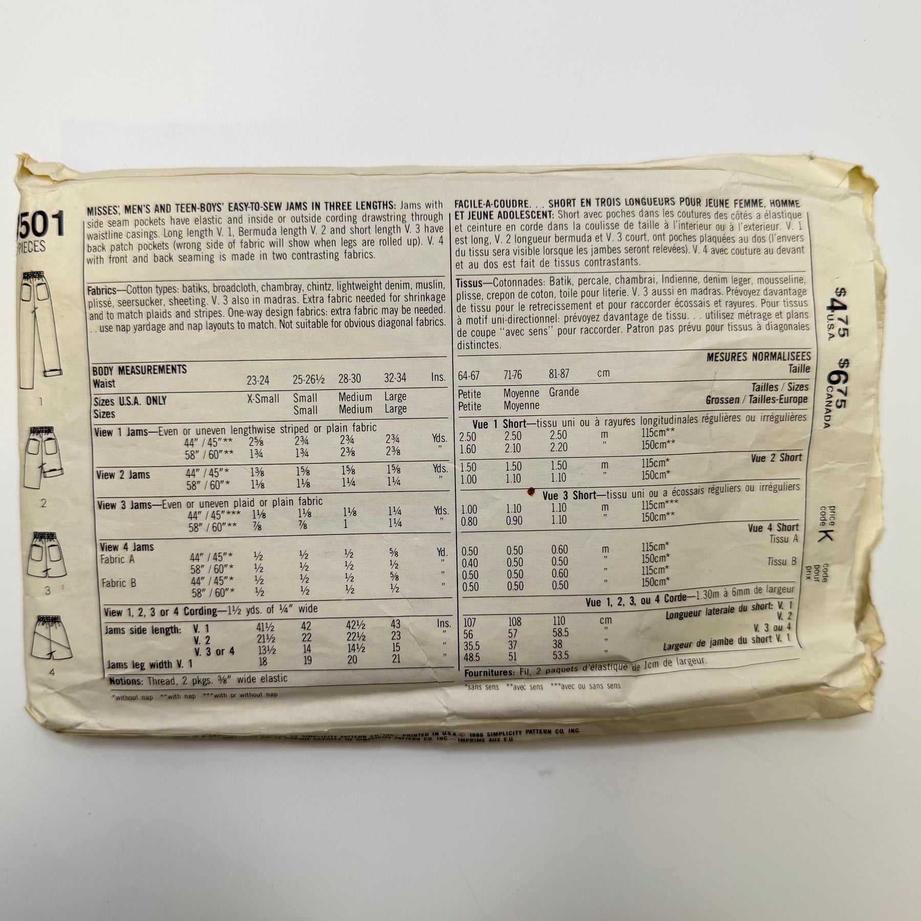 - Please note your size and measurements, as well as the required notions on the package.