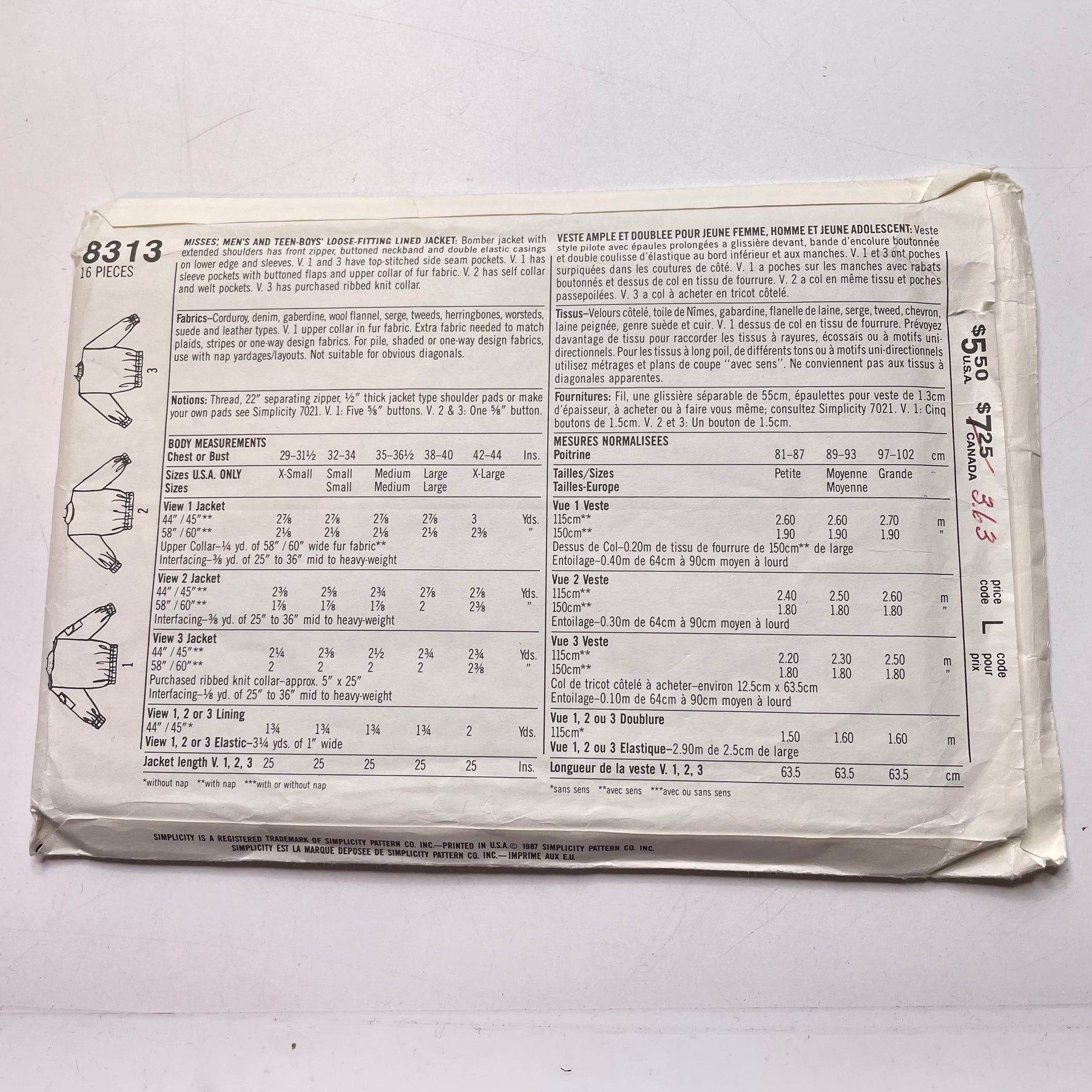 - Please note your size and measurements, as well as the required notions on the package.