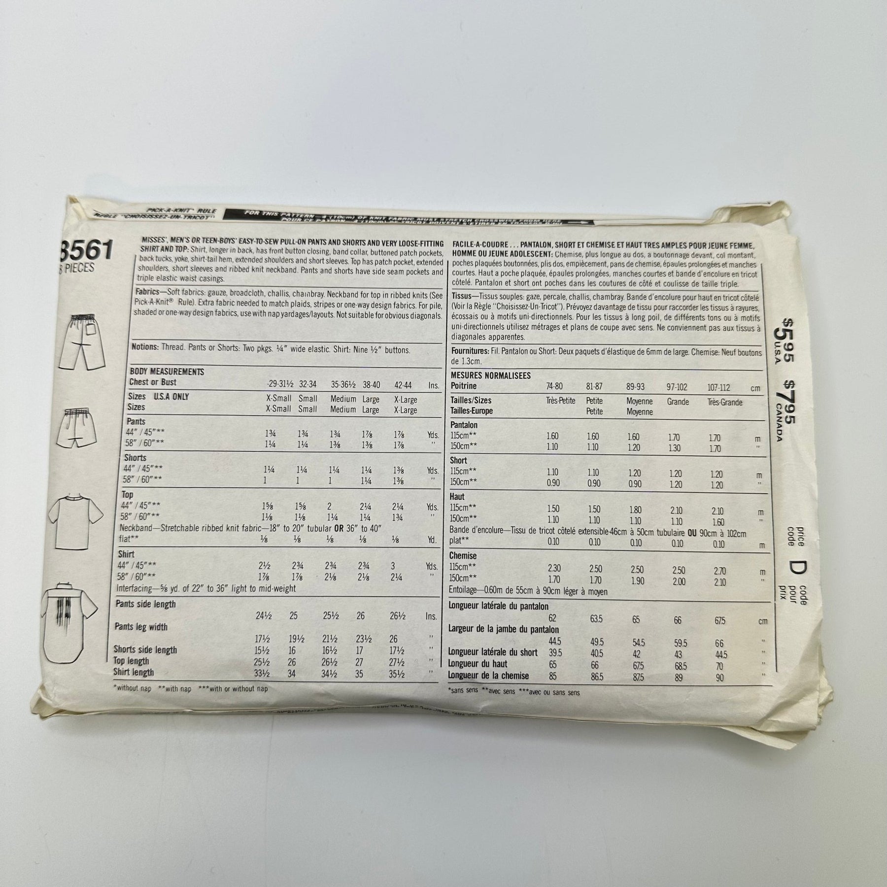 - Please note your size and measurements, as well as the required notions on the package.