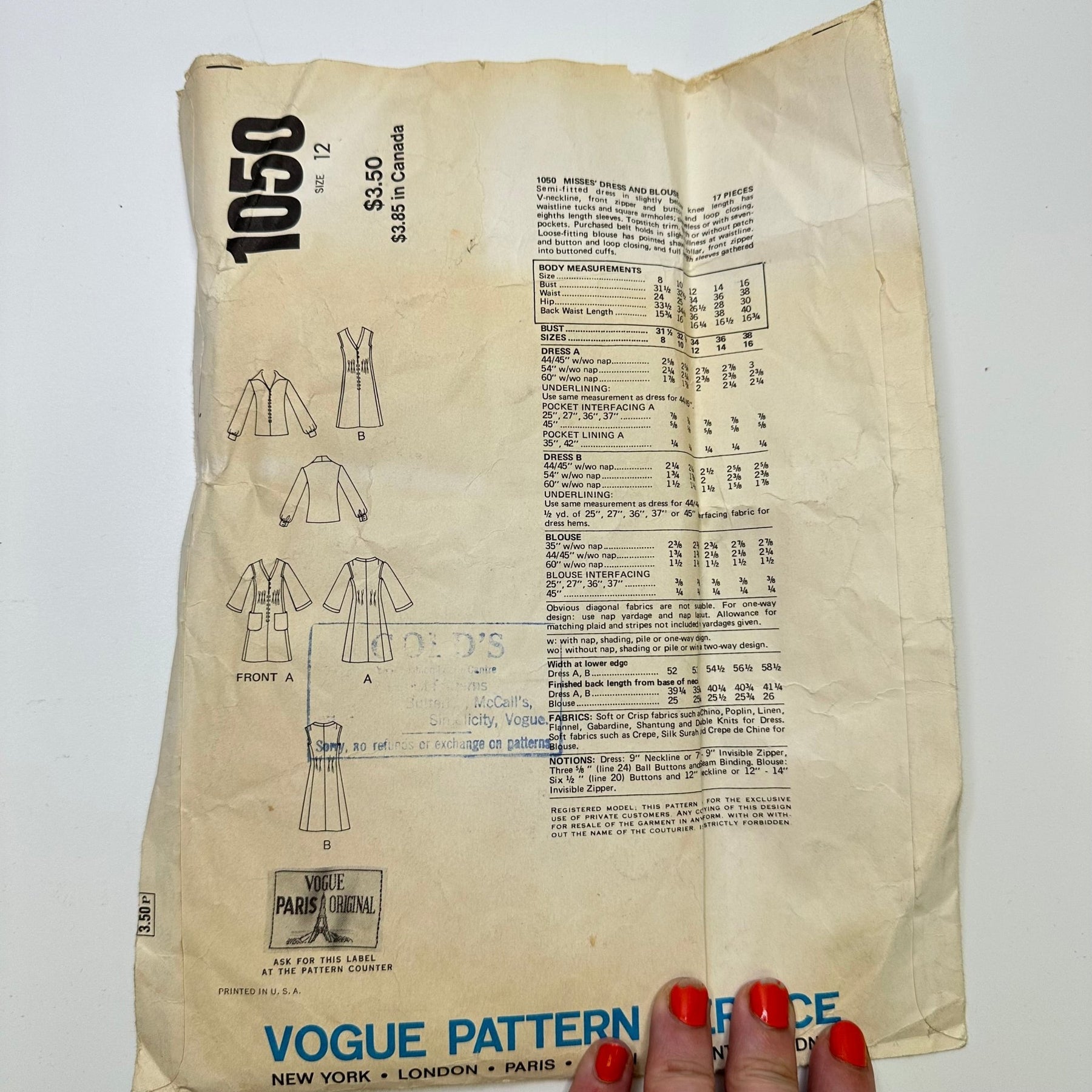 - Please note your size and measurements, as well as the required notions on the package.