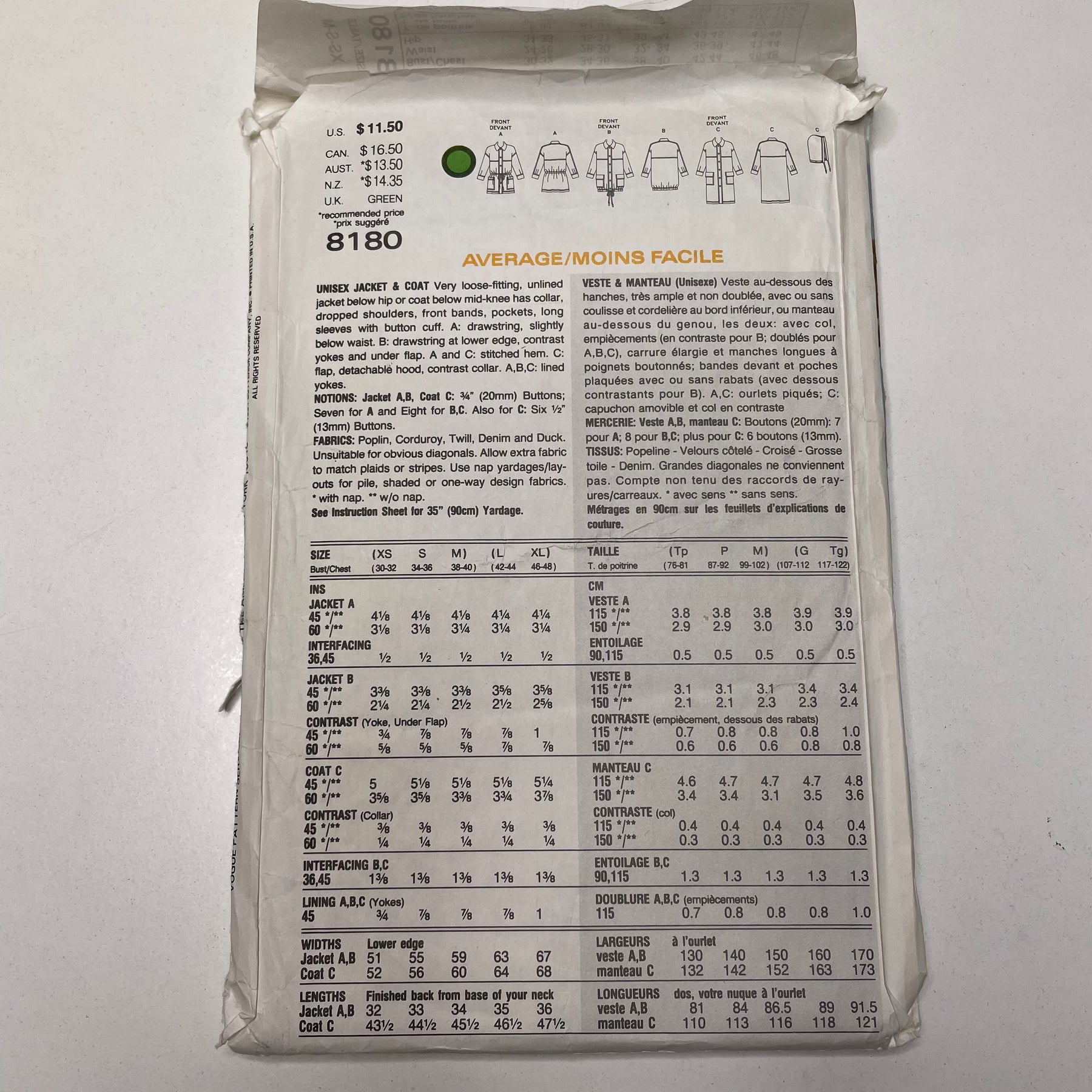 Sewing Pattern - Unisex - Vogue 8180