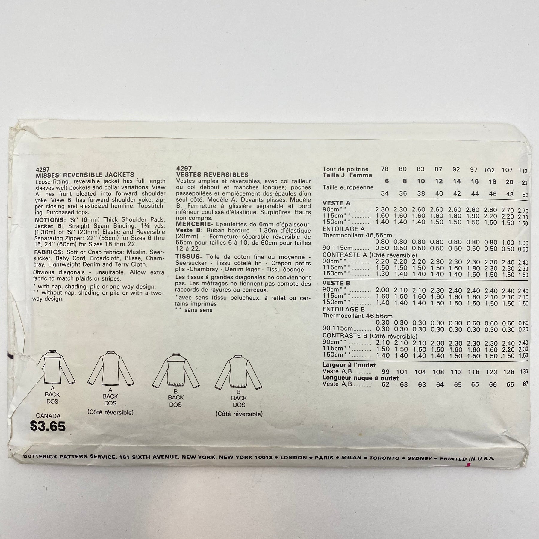 Please note your size and measurements, as well as the required notions on the package.Â