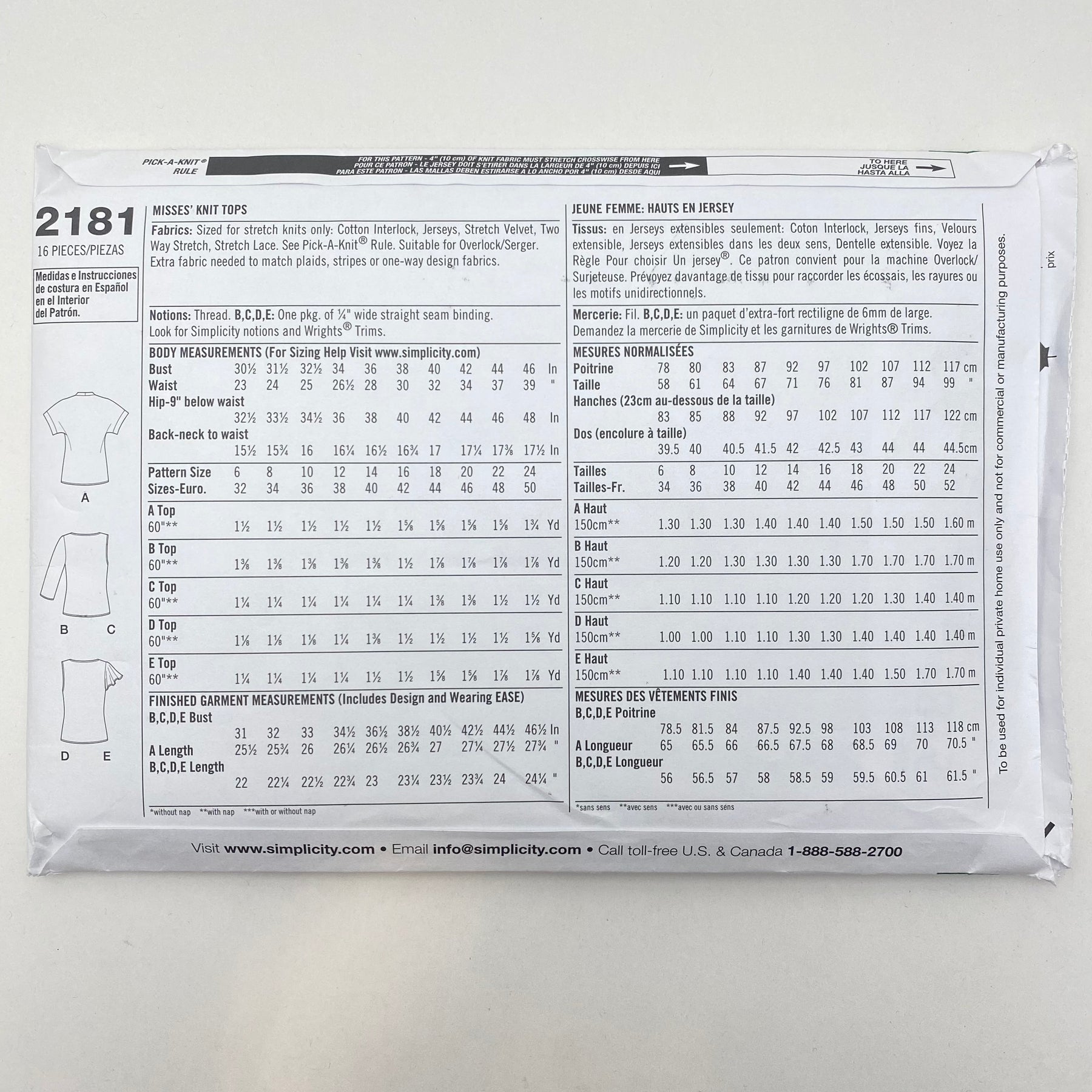 Sewing Pattern - Women’s - Simplicity 2181