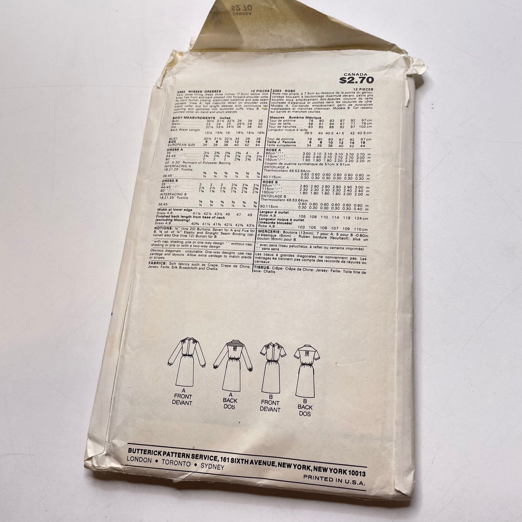Brand: Butterick 3353