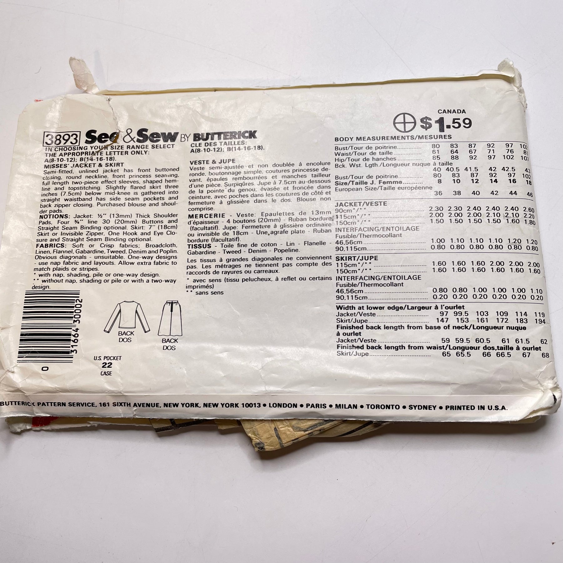 Sewing Pattern - Womenswear - Butterick 3893