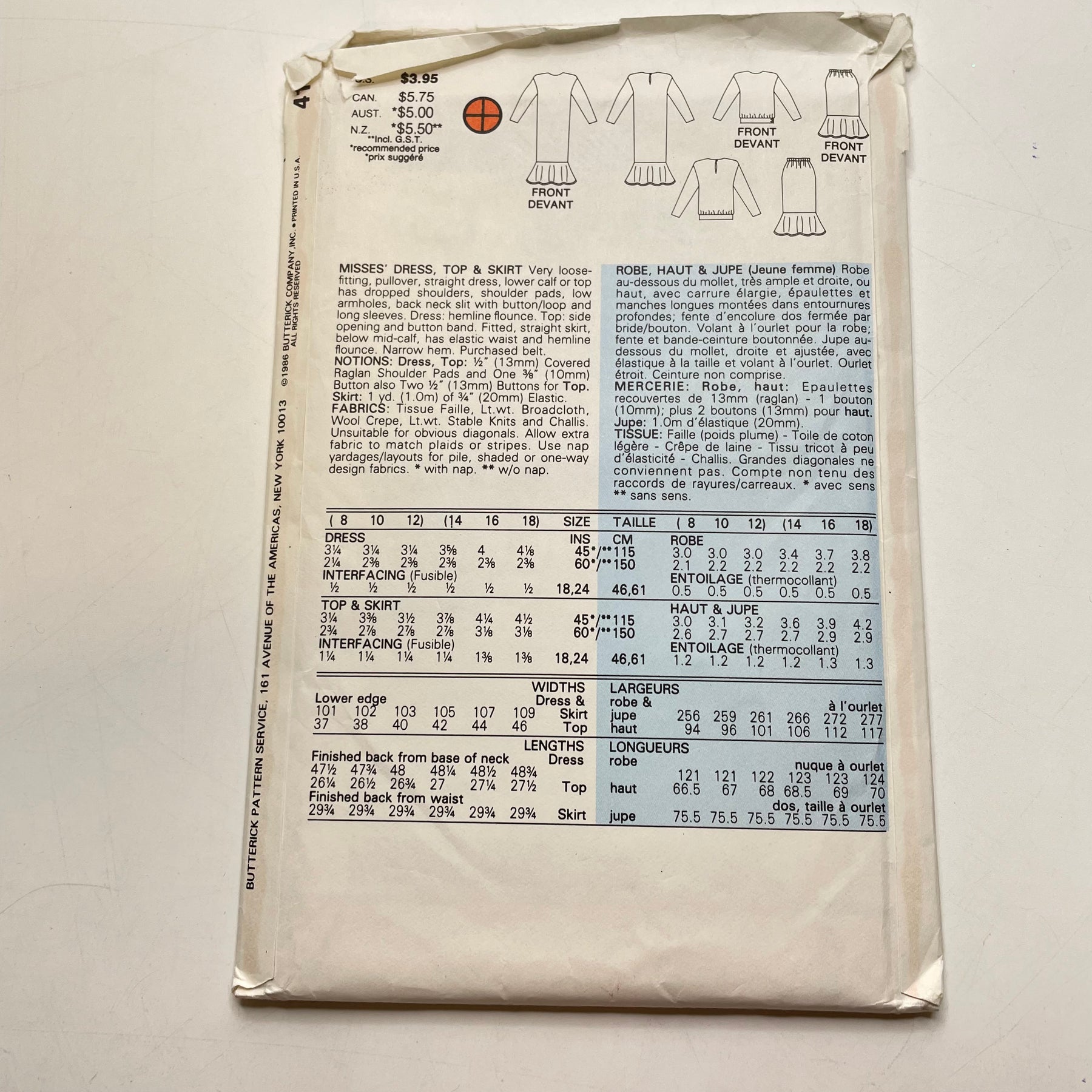 - Please note your size and measurements, as well as the required notions on the package.