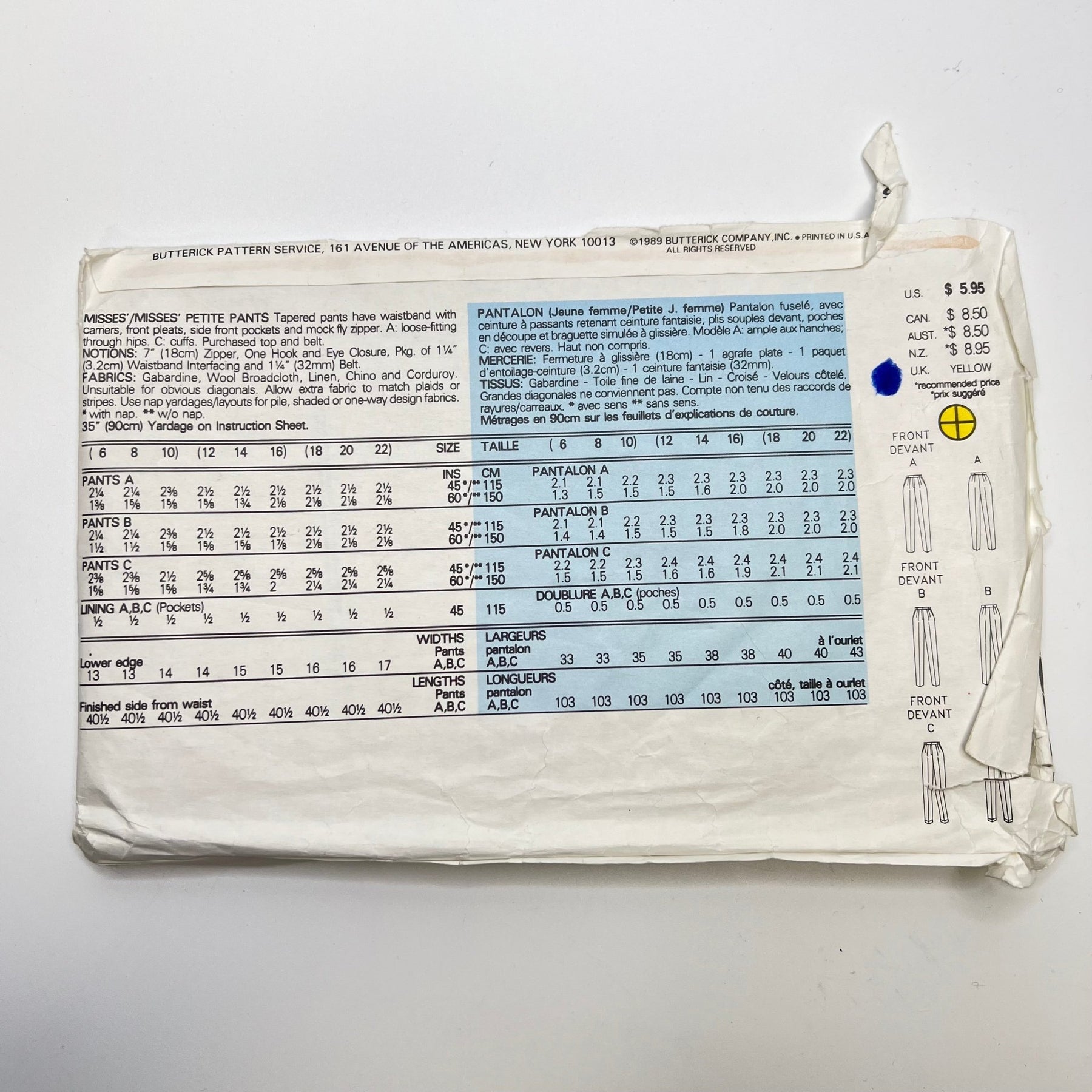 - Please note your size and measurements, as well as the required notions on the package.