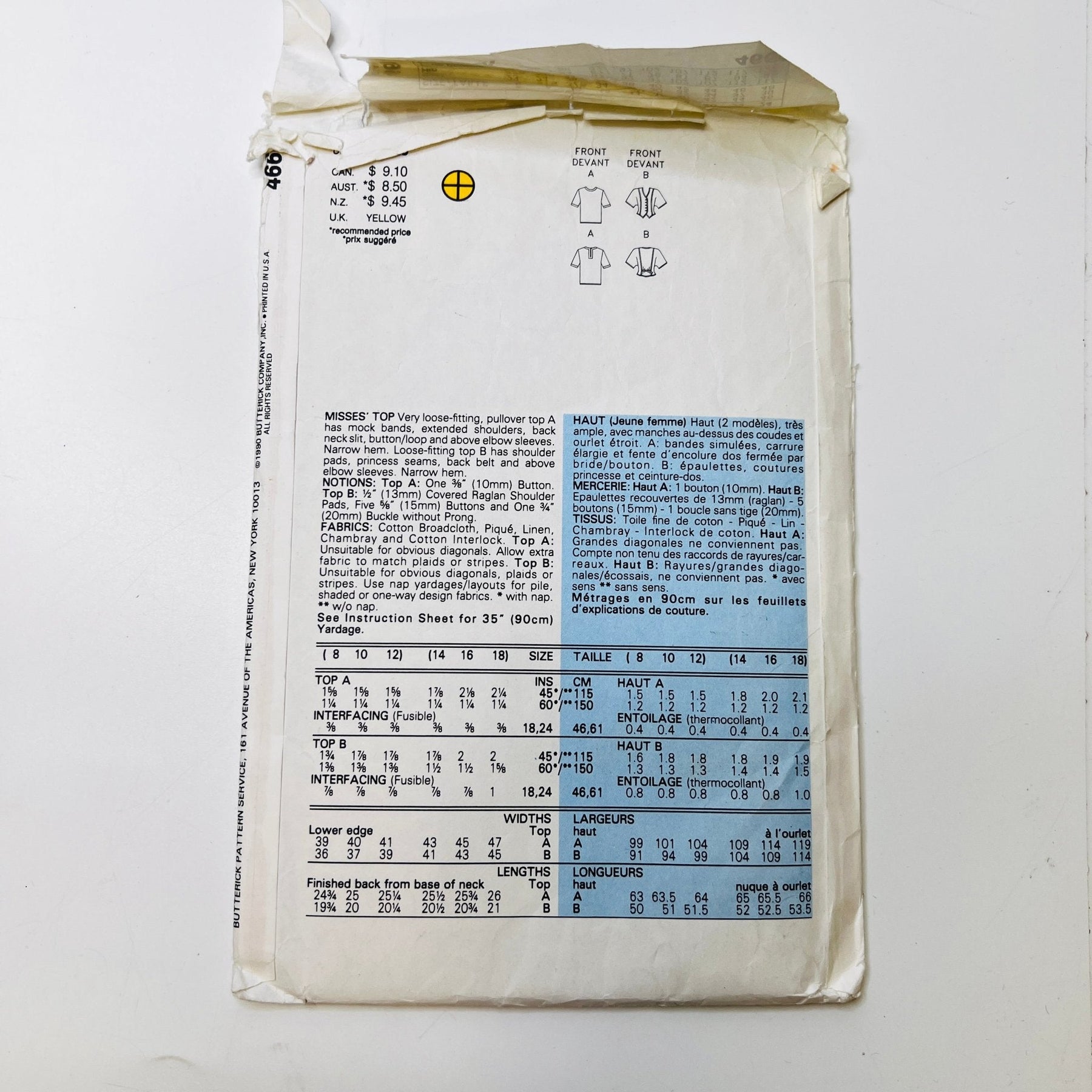 • Please note your size and measurements, as well as the required notions on the package.