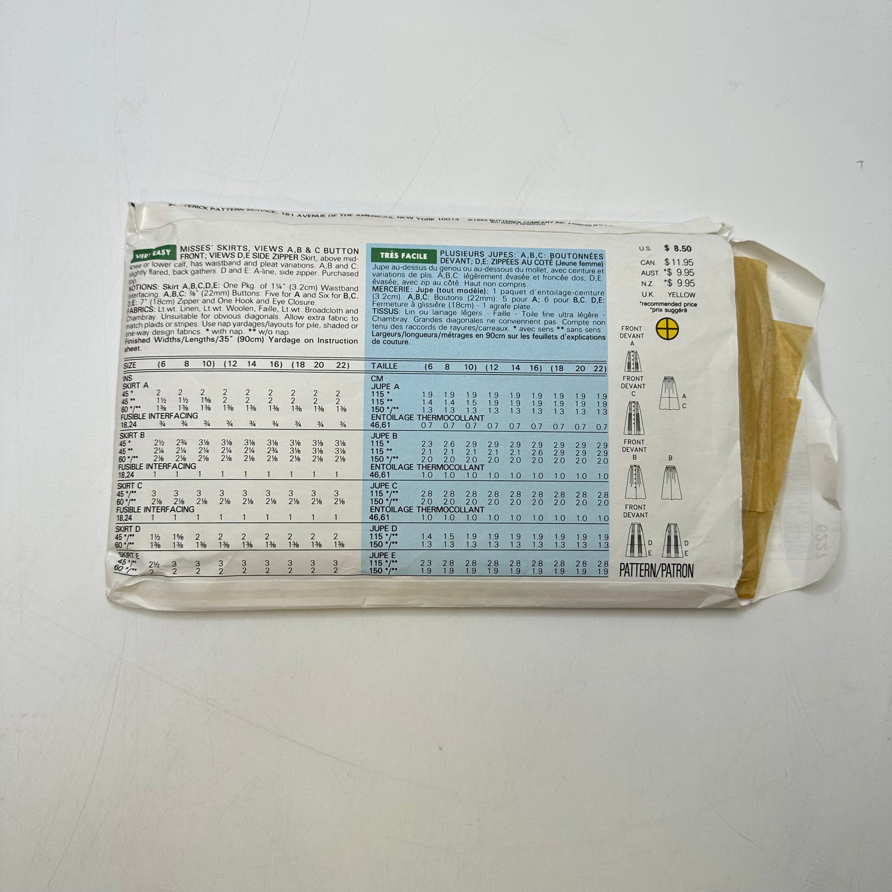 - Please note your size and measurements, as well as the required notions on the package.