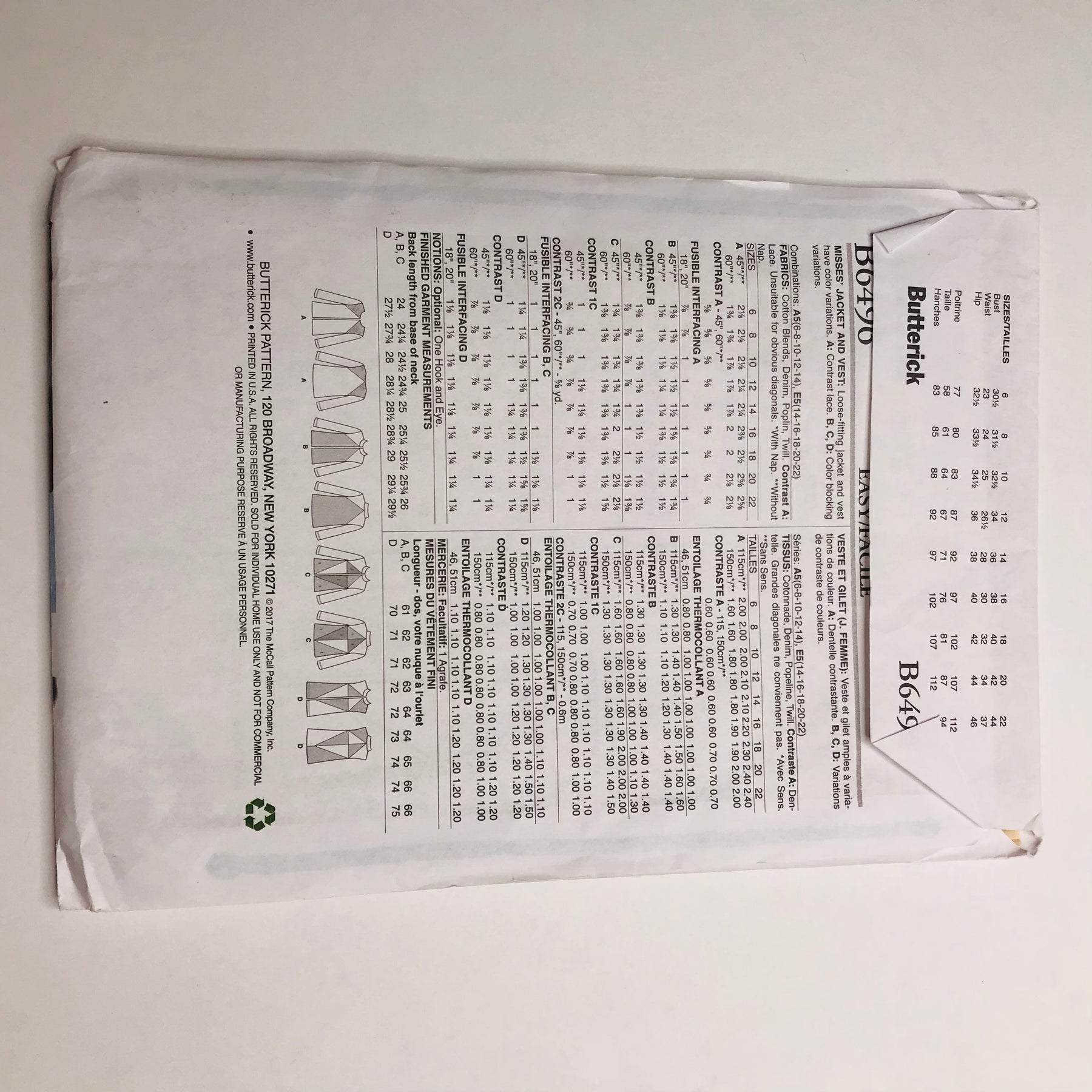 - Please note your size and measurements, as well as the required notions on the package.