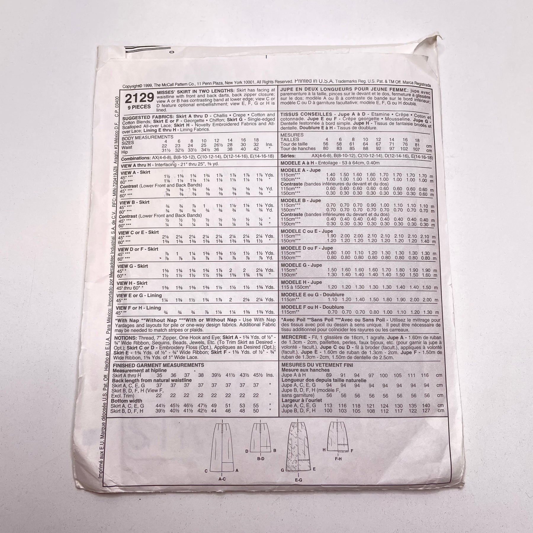 - Please note your size and measurements, as well as the required notions on the package.