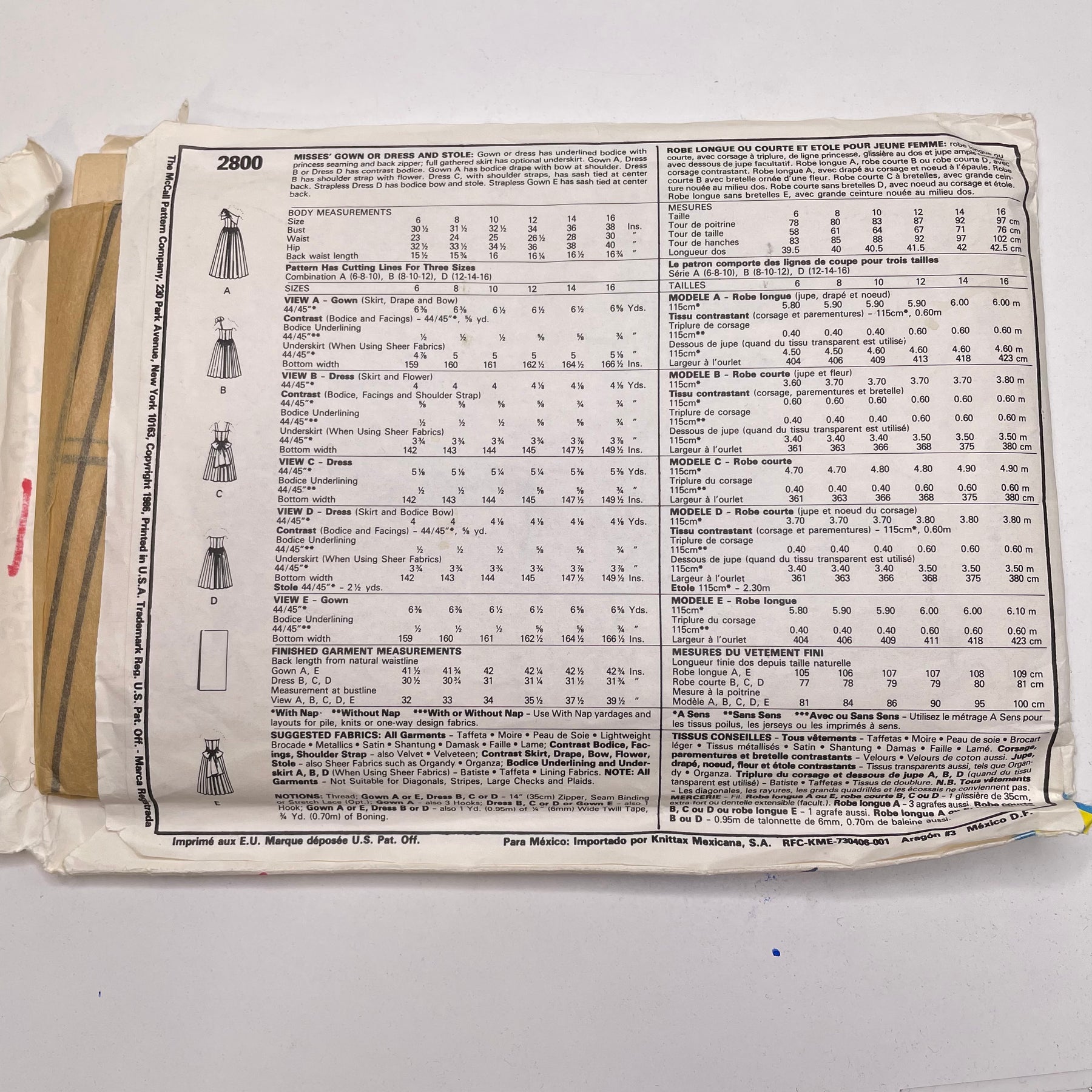 Brand:Â McCall's 2800