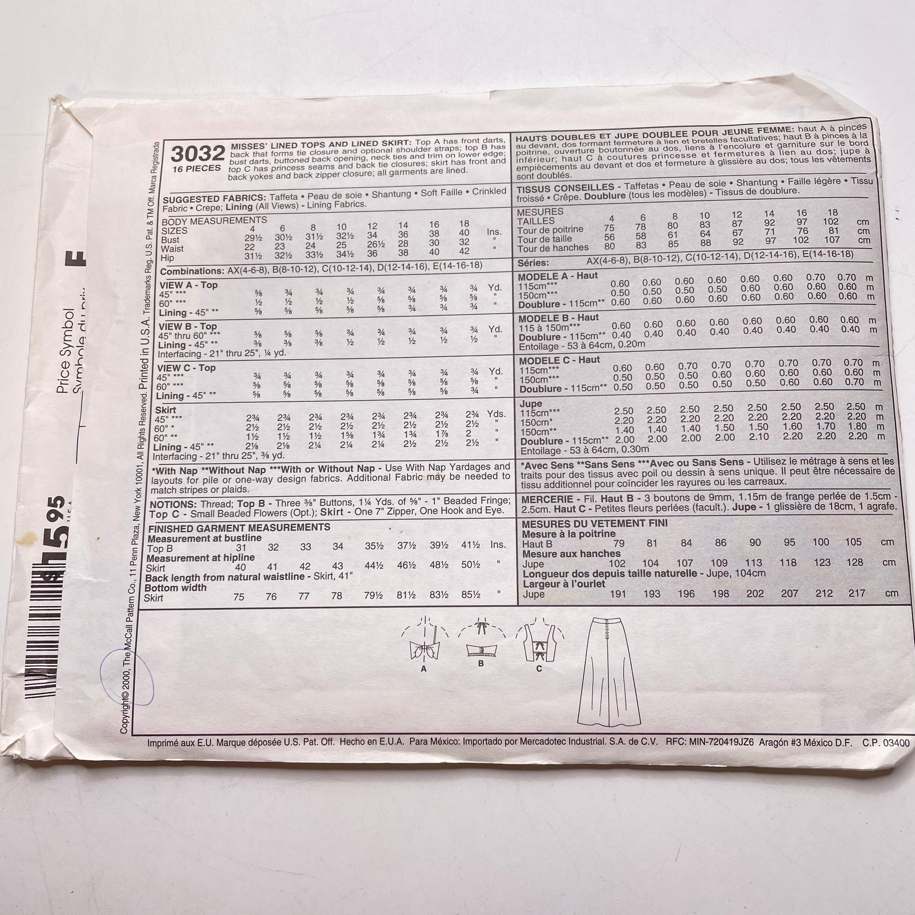 - Please note your size and measurements, as well as the required notions on the package.