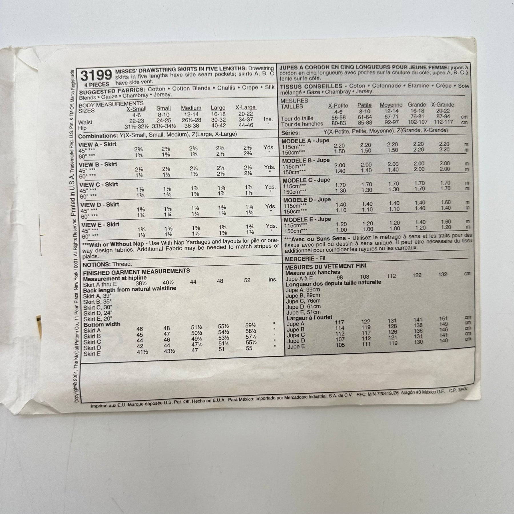 - Please note your size and measurements, as well as the required notions on the package.