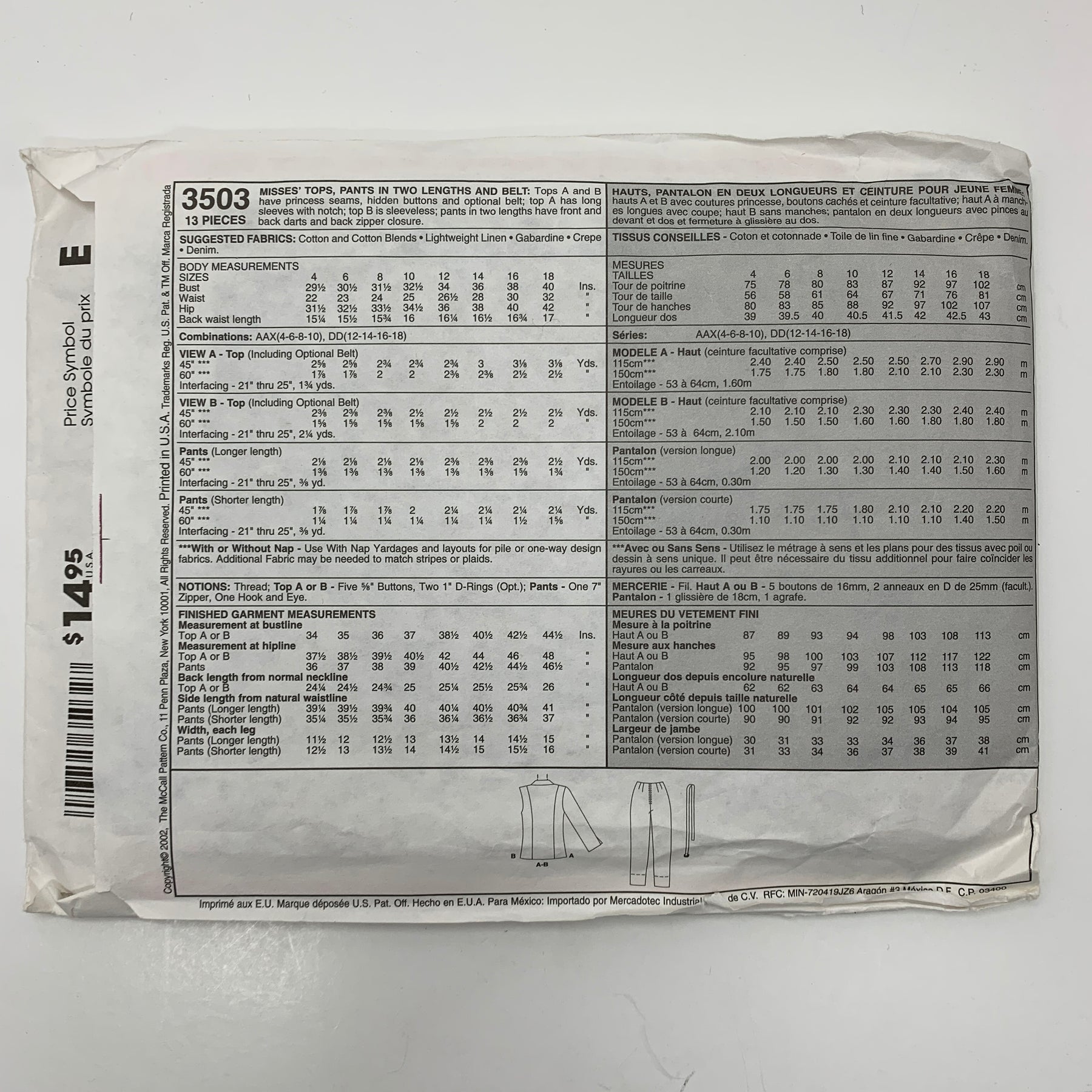 Brand:Â McCall's 3503