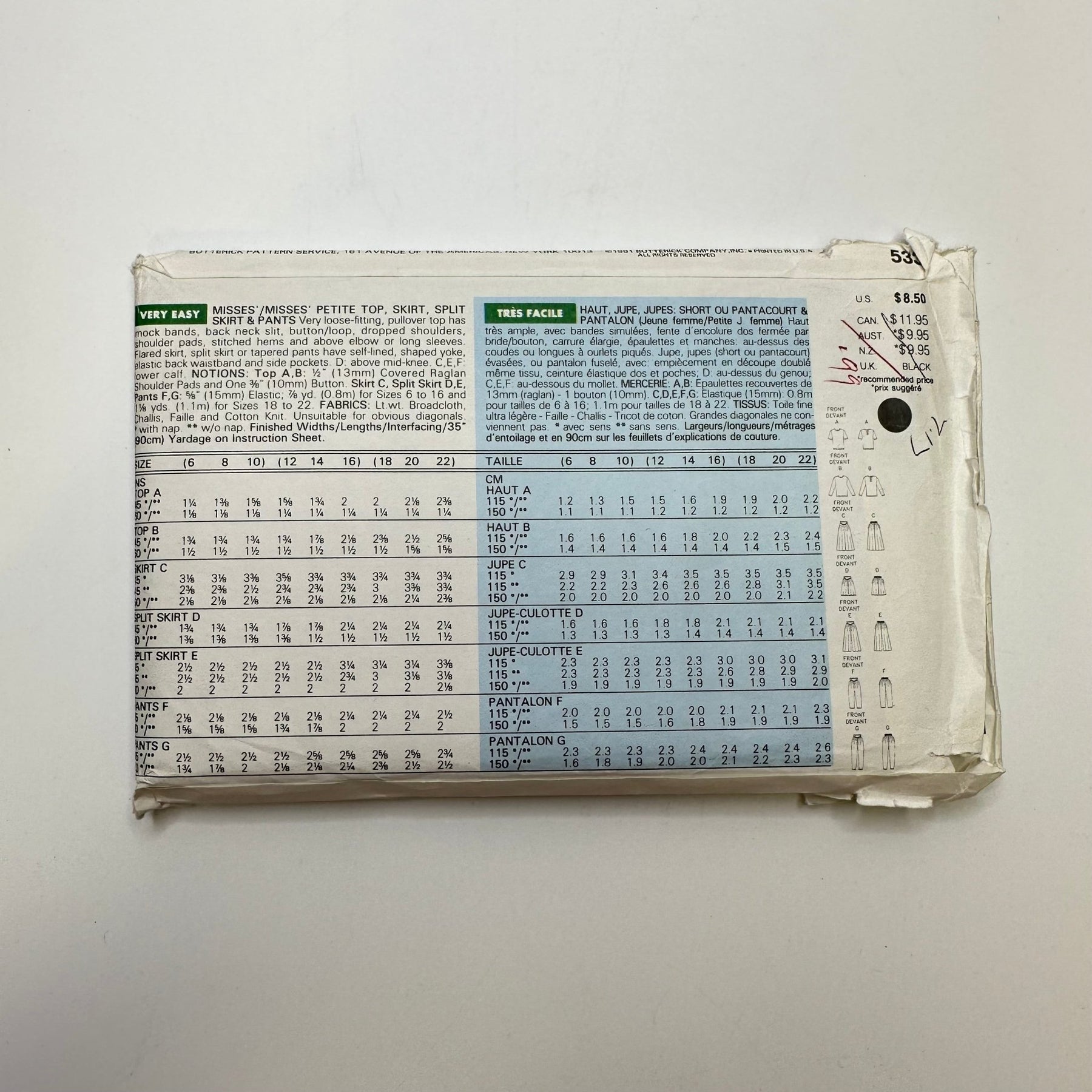 - Please note your size and measurements, as well as the required notions on the package.