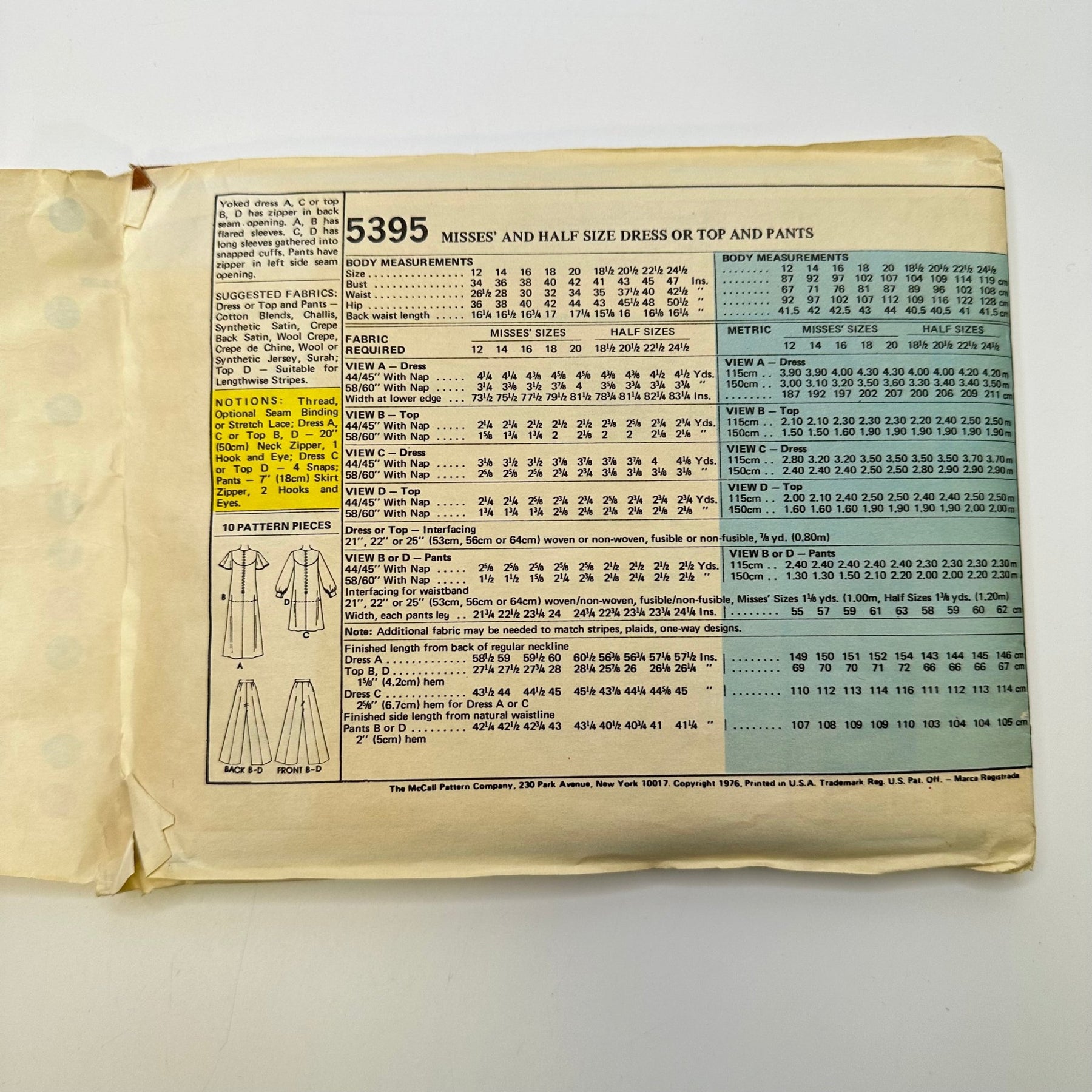 - Please note your size and measurements, as well as the required notions on the package.