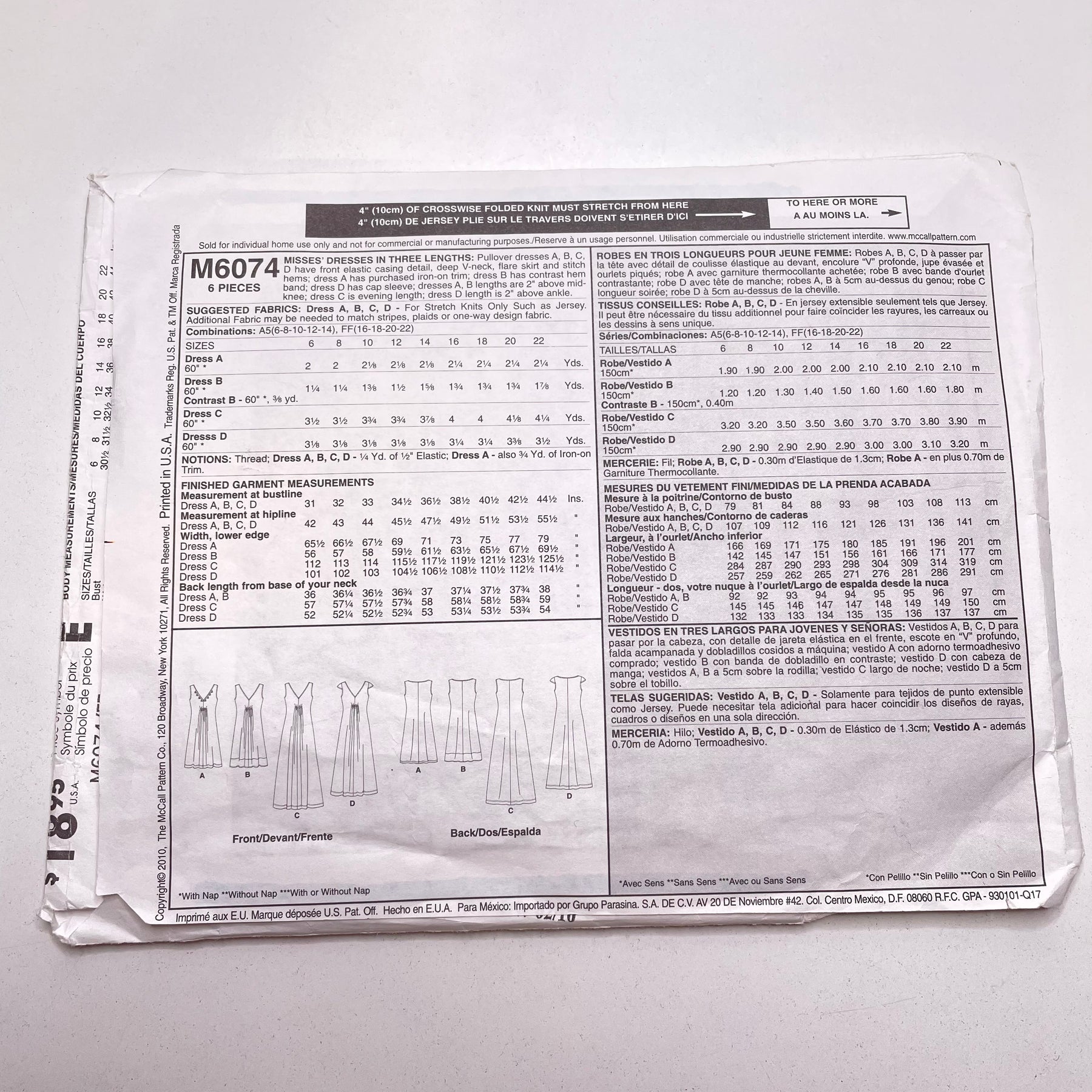Sewing Pattern - Womenswear - McCall's 6074