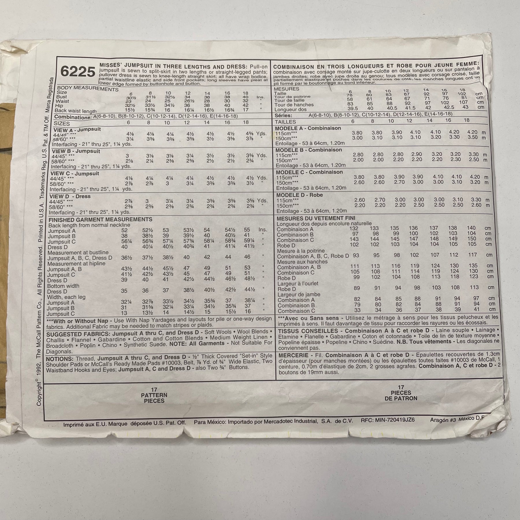 Brand:Â McCall's 6225
