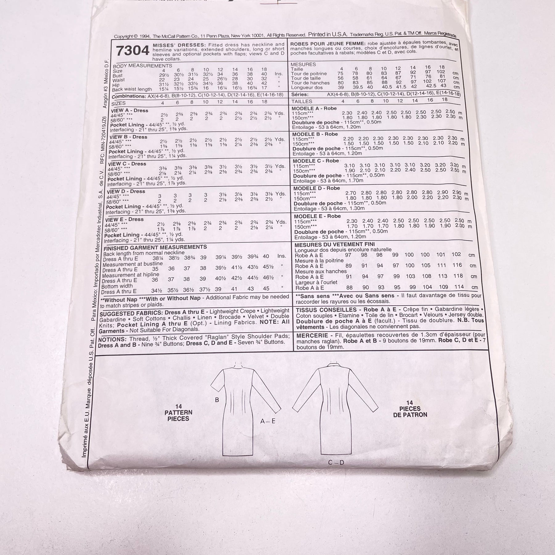 Sewing Pattern - Womenswear - McCall's 7304
