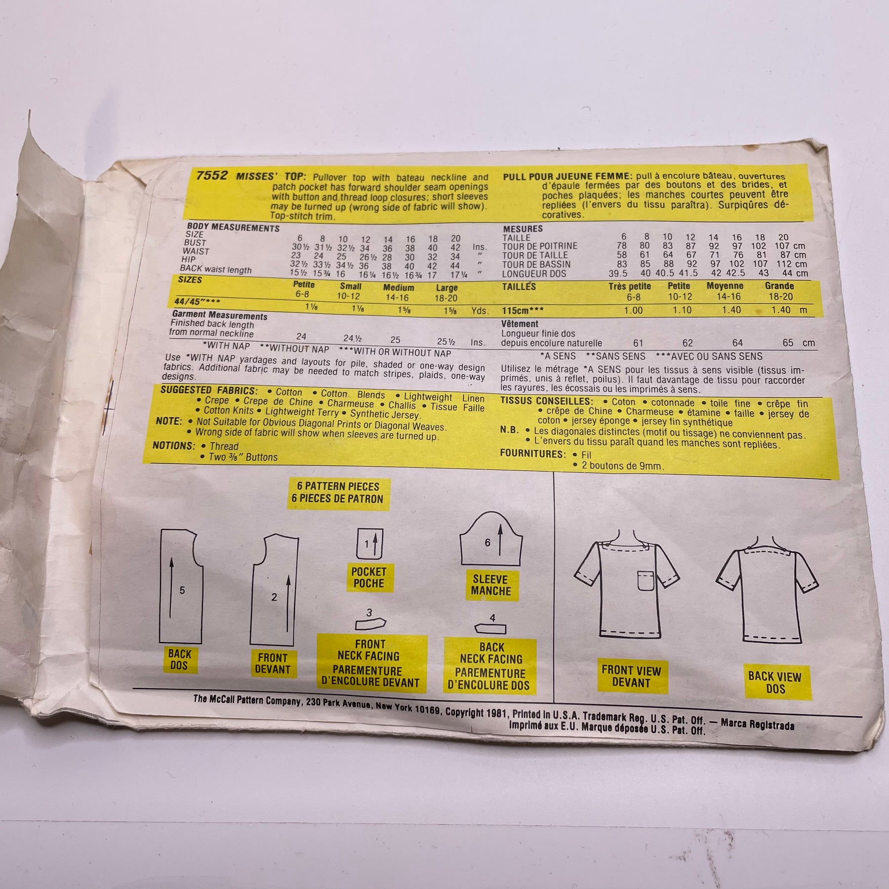 - Please note your size and measurements, as well as the required notions on the package.