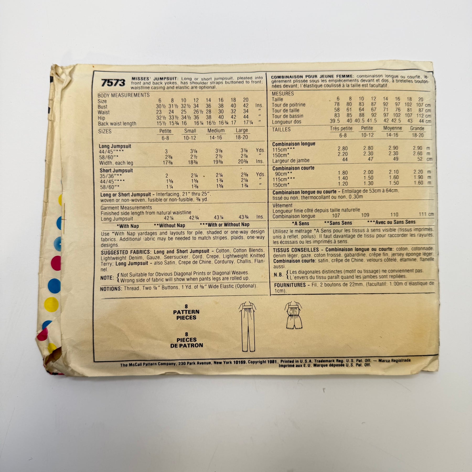 - Please note your size and measurements, as well as the required notions on the package.