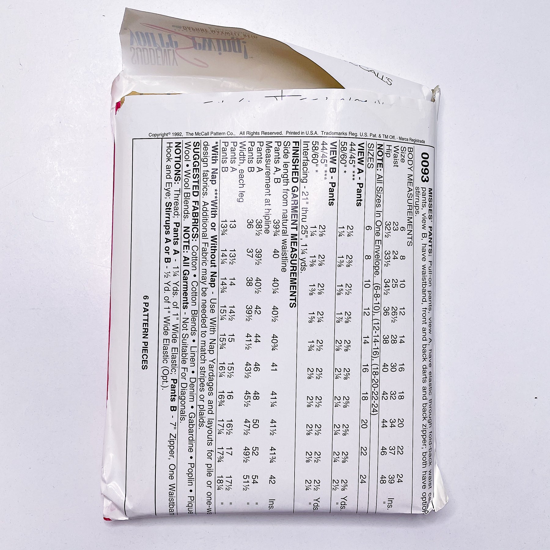 - Please note your size and measurements, as well as the required notions on the package.