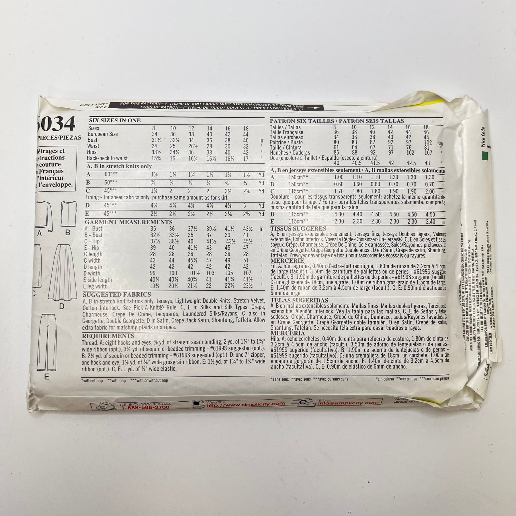 • Please note your size and measurements, as well as the required notions on the package.