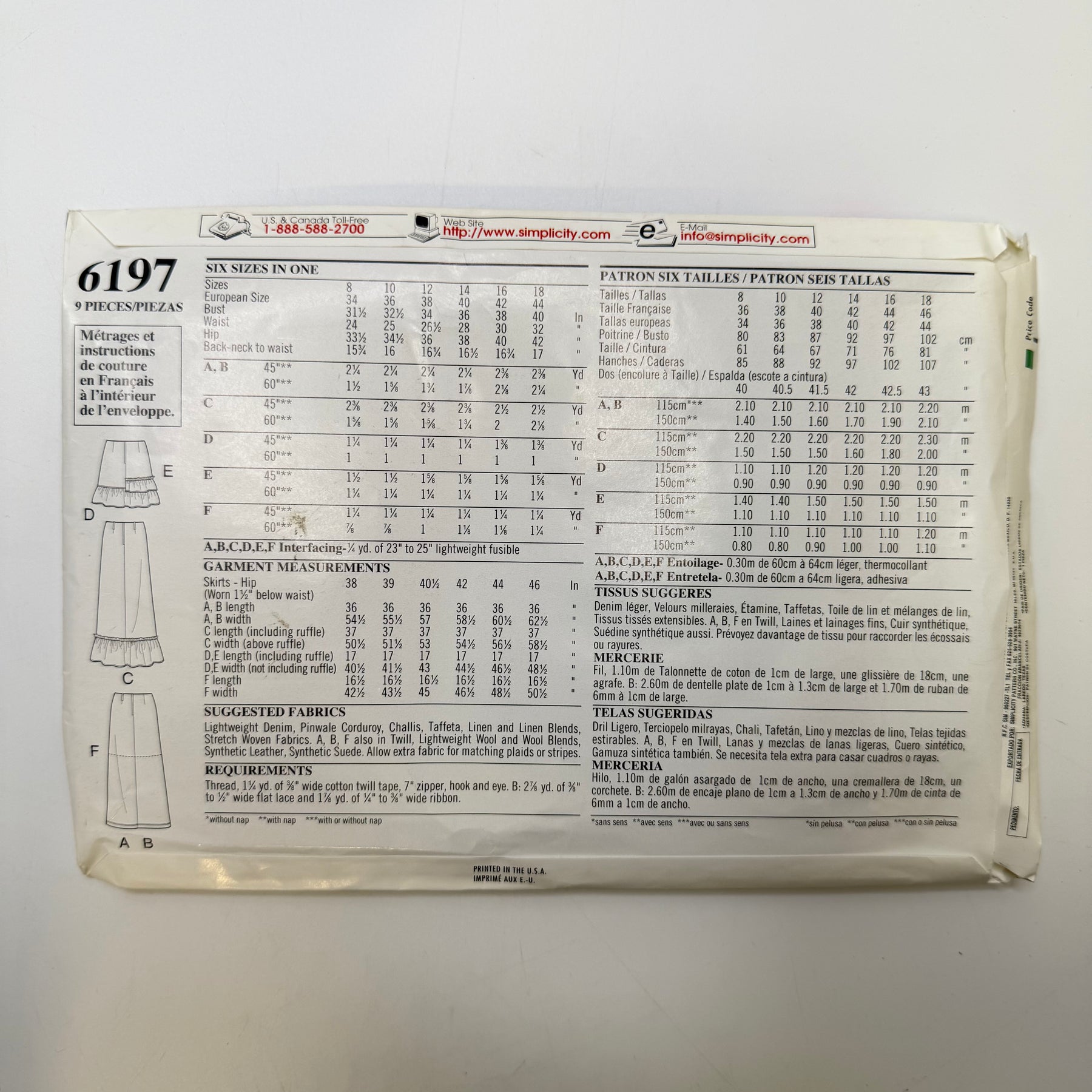 • Please note your size and measurements, as well as the required notions on the package.