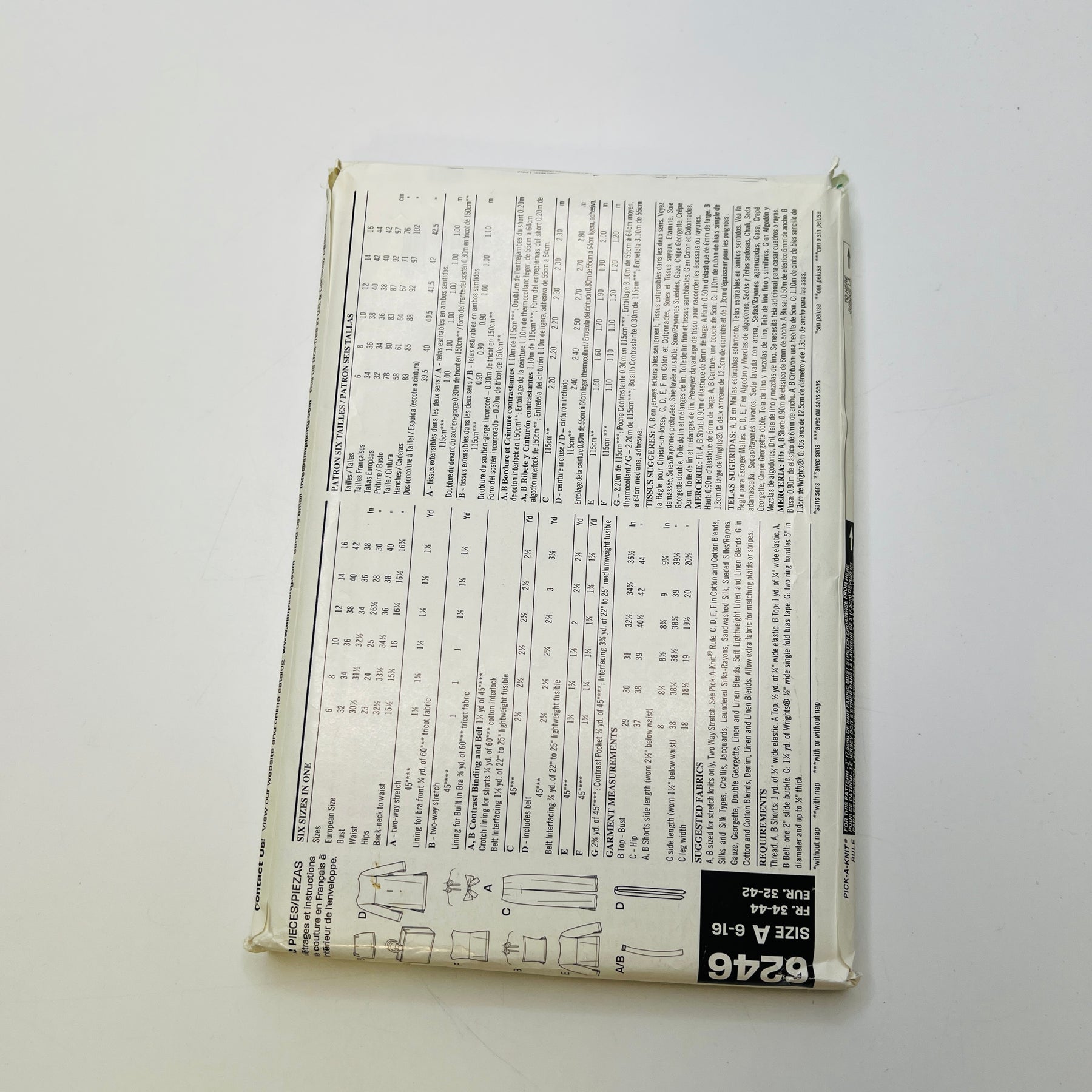 - Please note your size and measurements, as well as the required notions on the package.