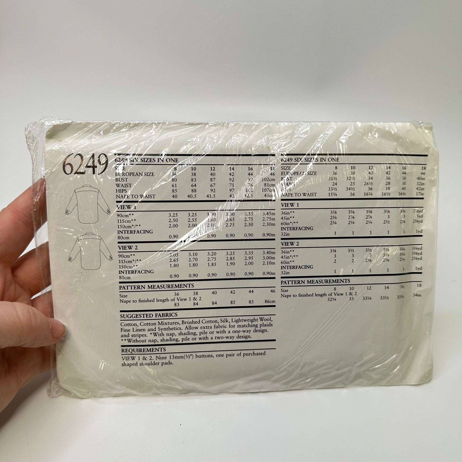 - Please note your size and measurements, as well as the required notions on the package.