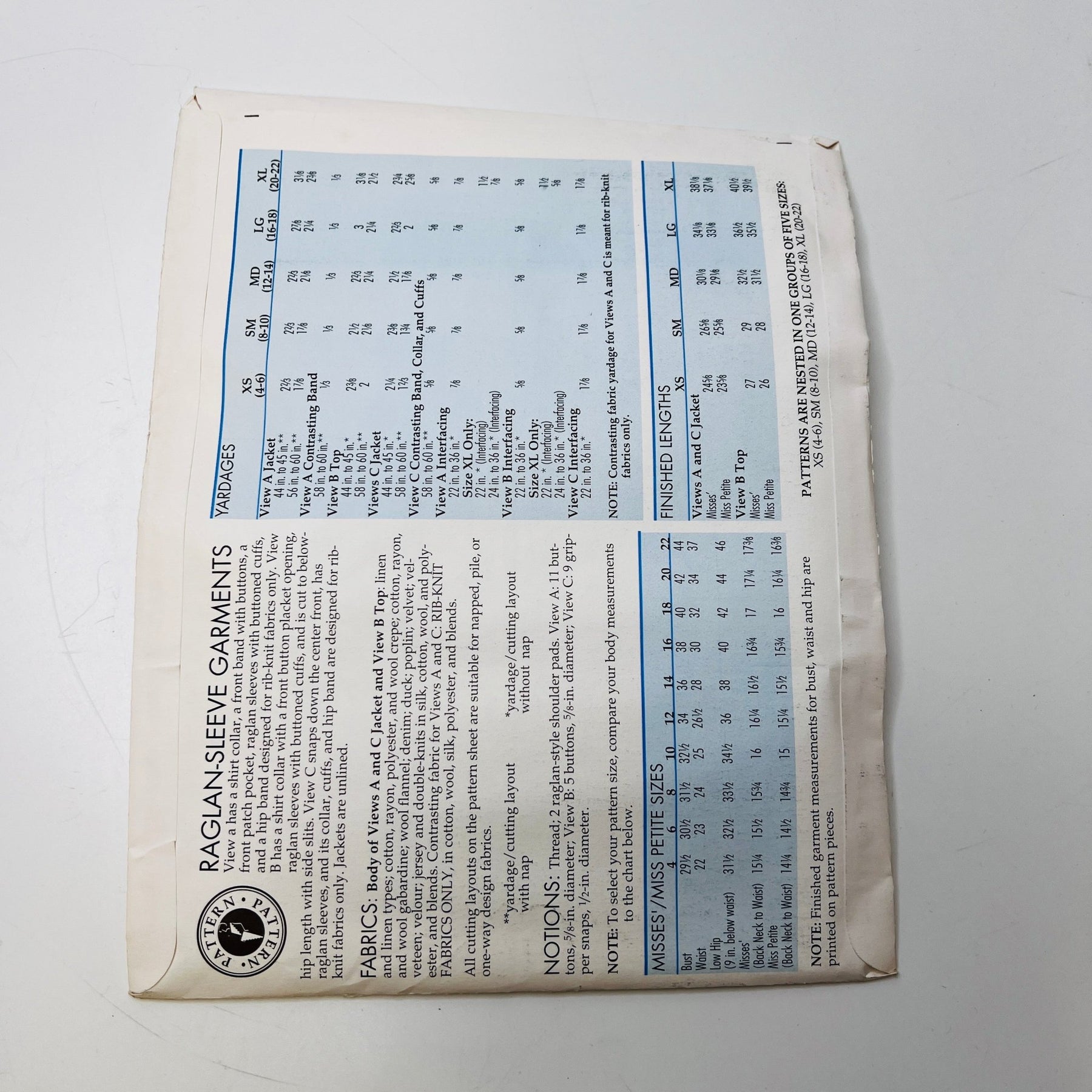 Sewing Pattern - Womenswear - Pattern Pattern - Raglan Sleeve Garments